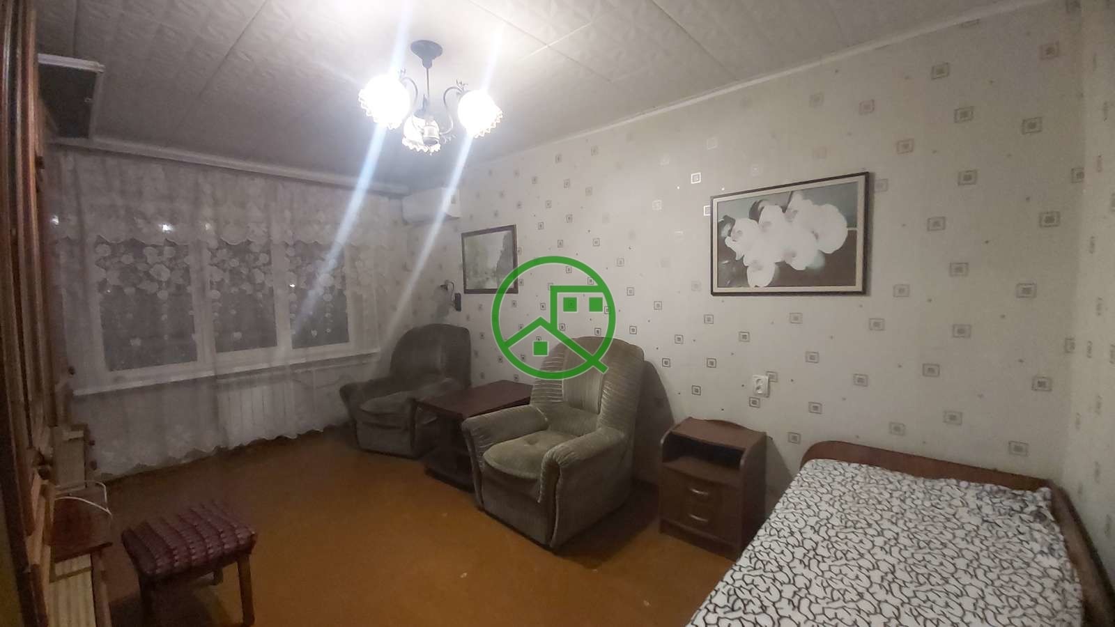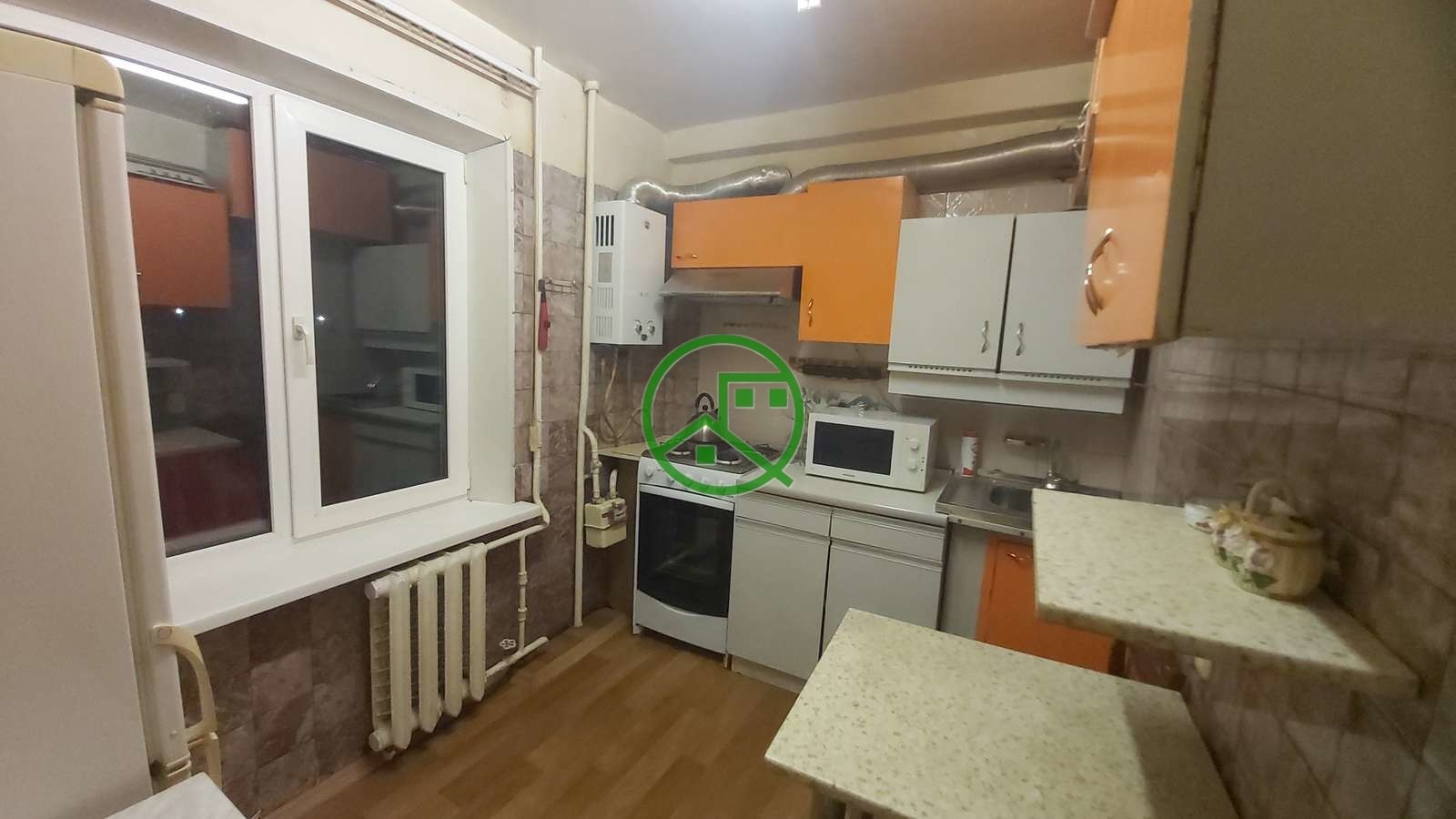 В квартире есть холодильник;телевизор; стиральная машина; кондиционер; шкафы, стол; стулья; кухонный гарнитур; 2 кровати, кресла.Отопление в доме центральное,стеклопакеты.
