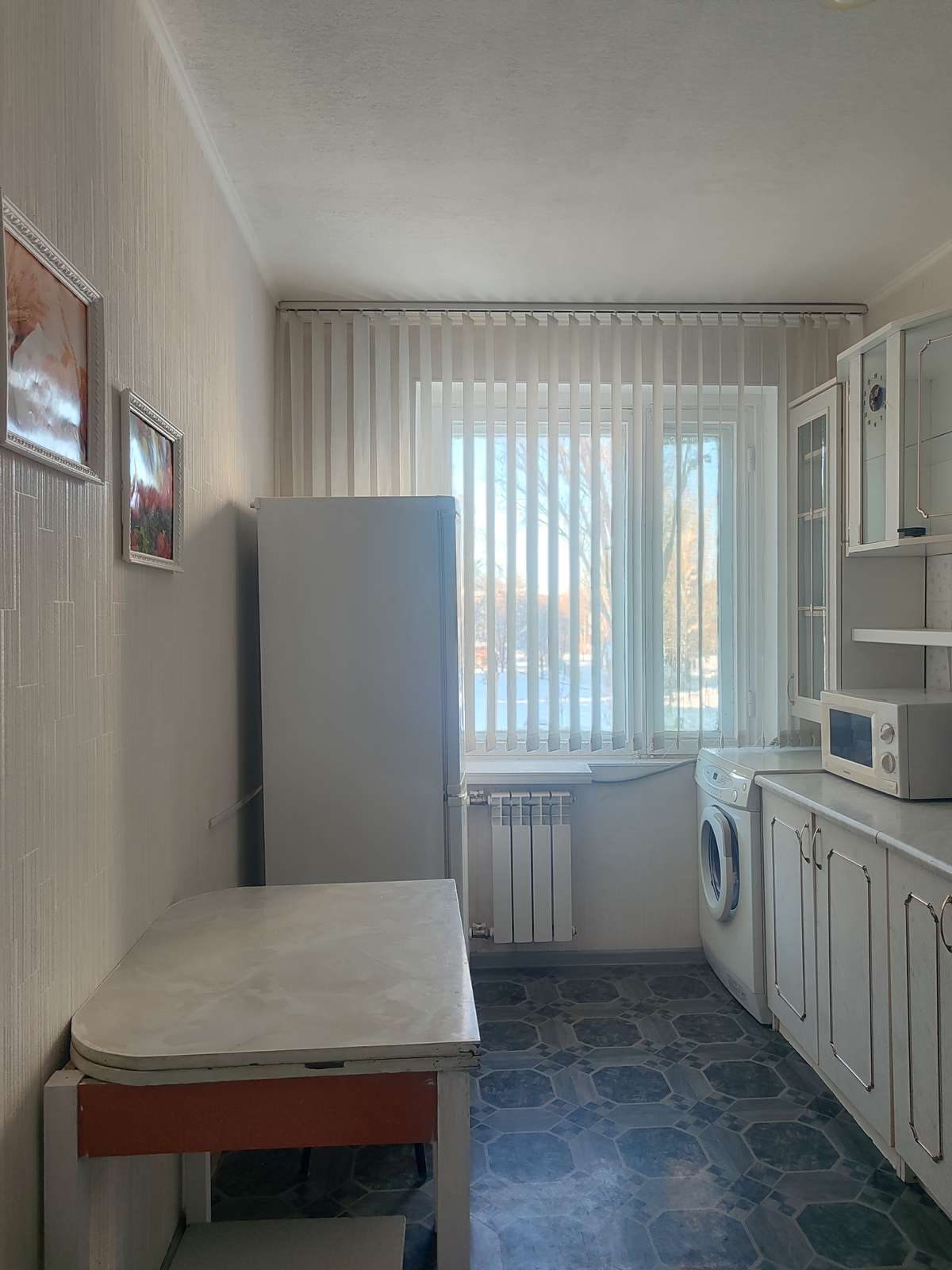 Санузел в плитке. Имеются счетчики на воду, действующие. На полу по всей квартире линолеум и заменены радиаторы отопления.
