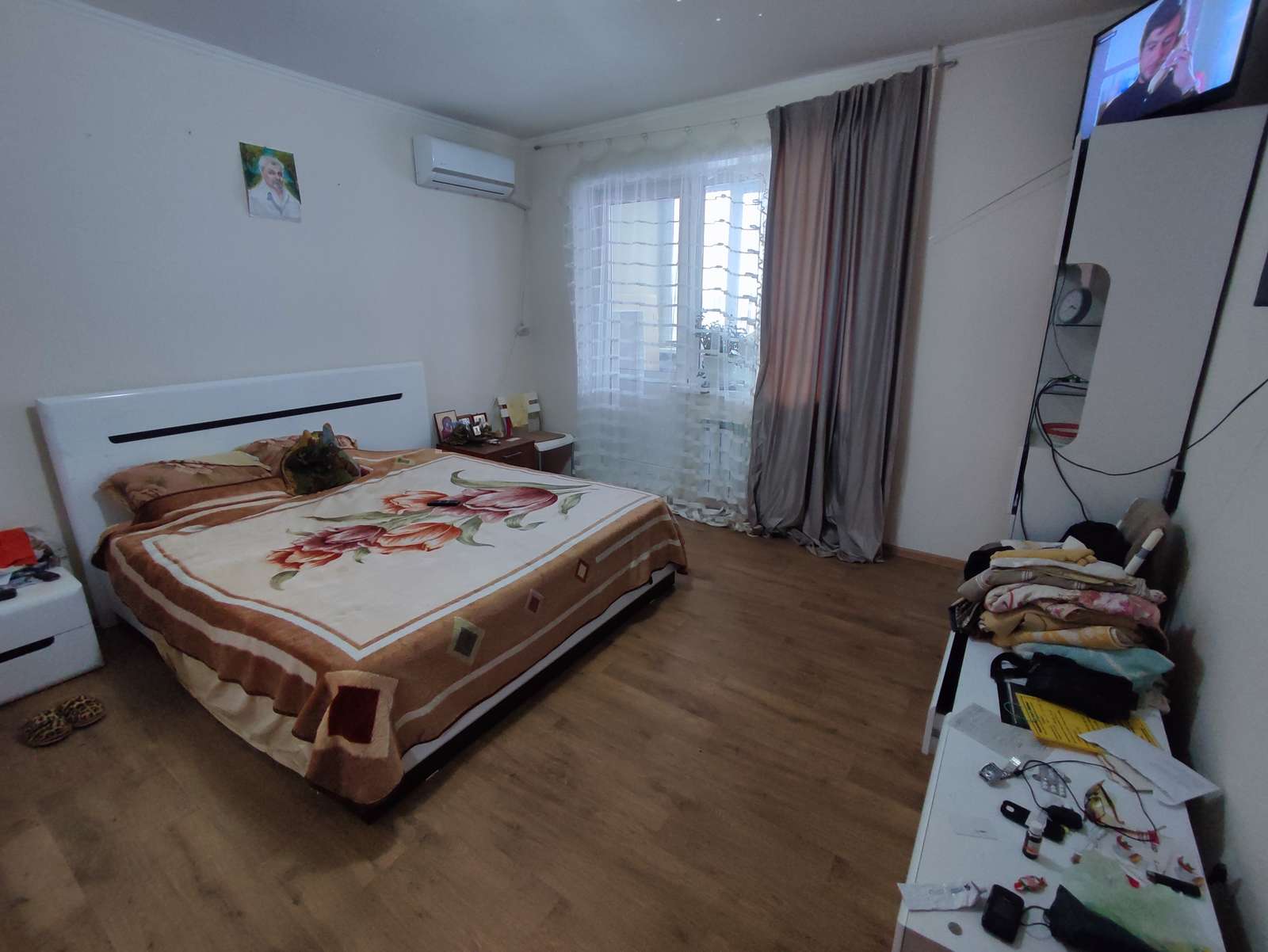 ОСТАЕТСЯ кондиционер - работает практически бесшумно; также большая кровать и вместительная шкаф, комоды.