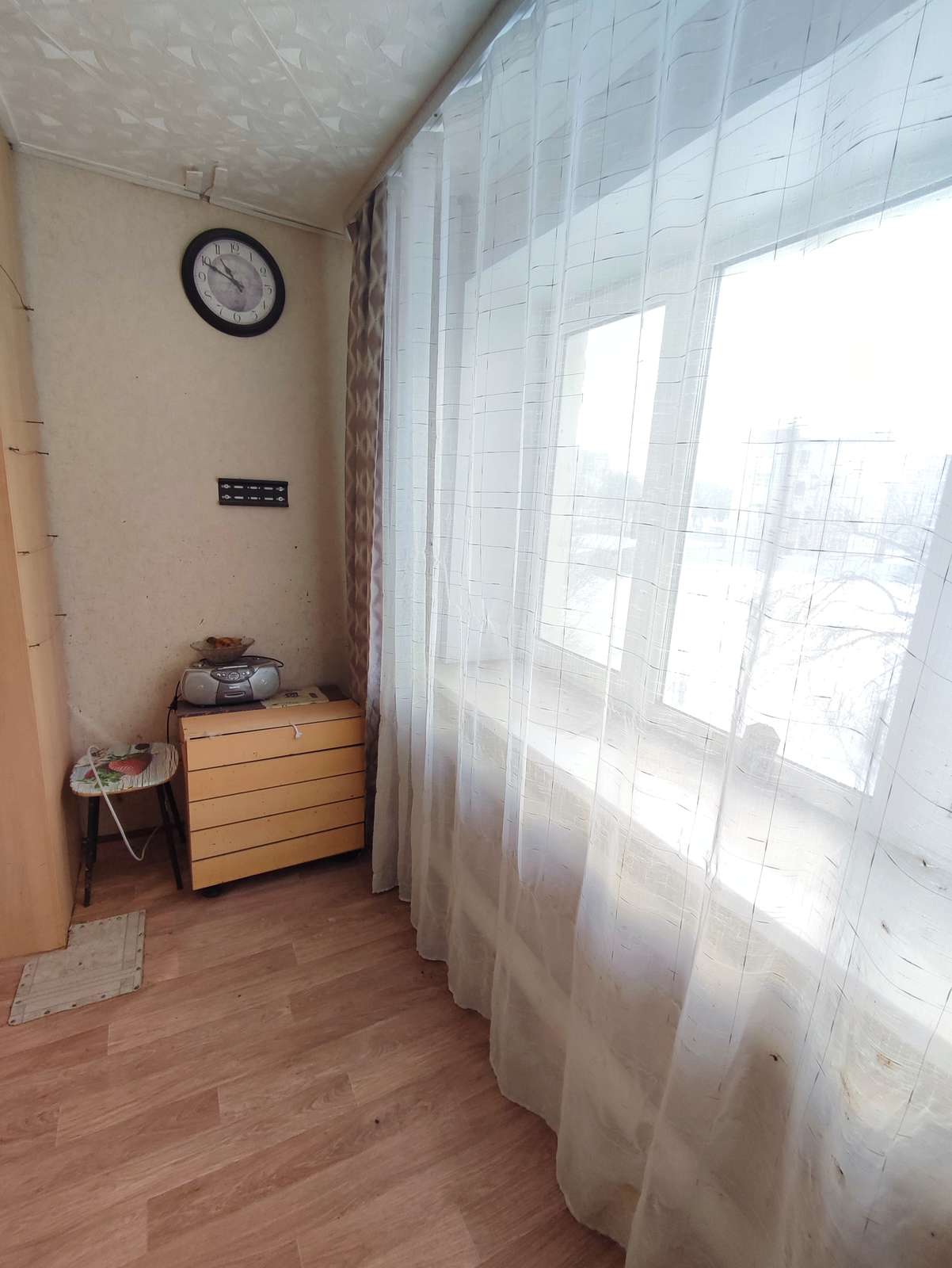 Состояние - косметический ремонт. Комната очень теплая и уютная, неугловая, находится в середине дома. Окно пластиковое. На полу линолеум. Также заменена входная.