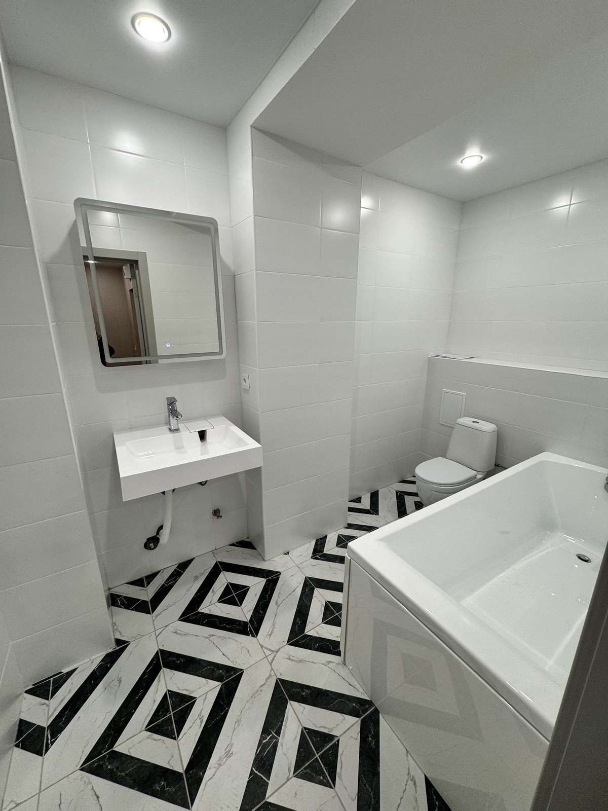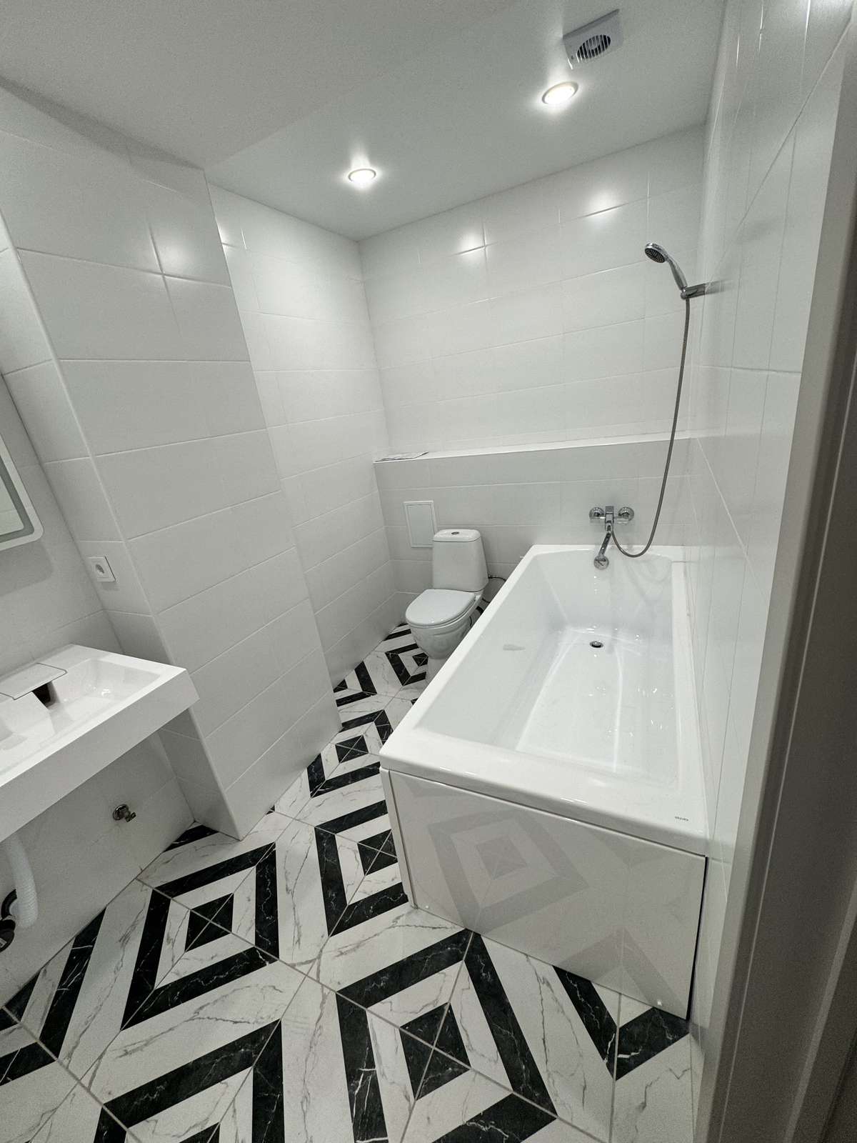 Санузел совмещённый, очень просторный что является удобным решением для экономии пространства.