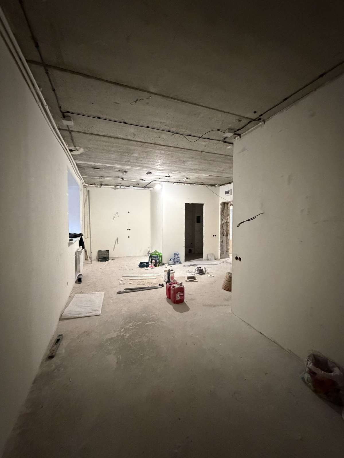 Перед началом проведения отделочных работ в помещении был проведен качественный капитальный ремонт. Стяжка пола, штукатурка стен. Полностью заменены электрика, трубы, обслужены окна. Установлены счетчики на воду горячую и холодную, электричество.