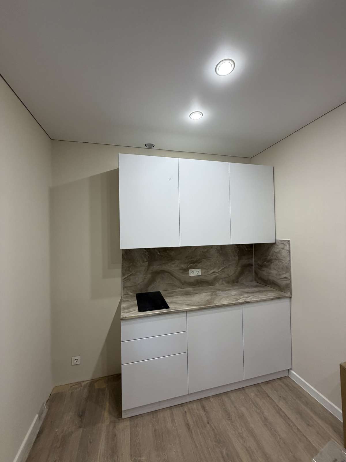 Студия будет передаваться покупателю укомплектованная кухонным гарнитуром со встроенной техникой.