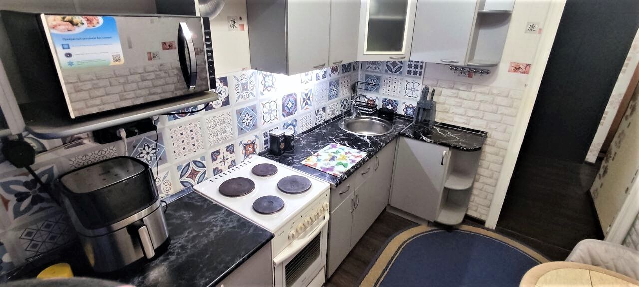 Предлагается к продаже двухкомнатная квартира площадью 43,4 квадратных метров в пятом квартале Автозаводского района, расположенная по адресу: проспект Степана Разина, дом 26. Квартира находится на пятом этаже и обладает следующими характеристиками: общая площадь: 43,4 м²; жилая площадь: 27 м²; площадь кухни: 7 м²; окна: пластиковые; потолки: в жилых комнатах выровнены, побелка; полы: новый линолеум; лоджия: застекленная пластиковыми окнами, вид с балкона красивый, рассветы и закаты радуют глаз; санузел: раздельный. После покупки в квартире остаются встроенная кухня, посудомоечная машина, кондиционер, система очистки воды марки "Аквафор", два шкаф-купе, стеллажи на балконе. Чистый подъезд, тихие соседи. В рамках капитального ремонта в доме проведены замены труб горячего и холодного водоснабжения, канализации, системы отопления. В 2021 году в доме проведен капитальный ремонт крыши и торцевых фасадов дома. Во дворе дома детская и спортивная площадки. В шаговой доступности обновленная аллея по Ленинскому проспекту, сквер Жилкина, ТЦ "Русь на Волге", лес. Для семей с детьми неподалеку расположены школы (№41, №61 с углубленным изучением предметов, №44) и детские сады ("Ягодка", "Солнечный", "Волжанка", №115). Инфраструктура включает магазины "Магнит", "Пеликан", "Чижик", отделение почты №37, аптеки, остановки общественного транспорта. Хорошая транспортная развязка во все районы города. Взрослые собственники.