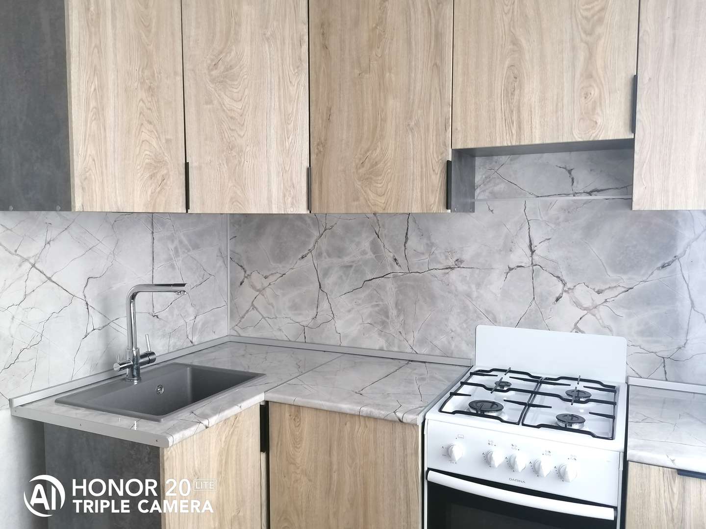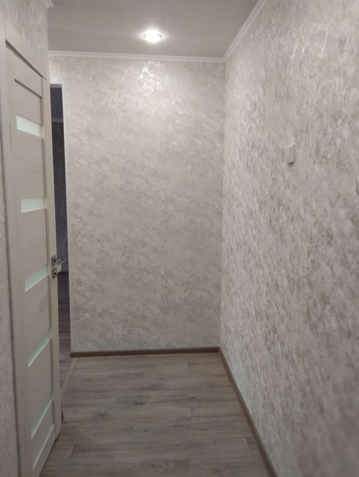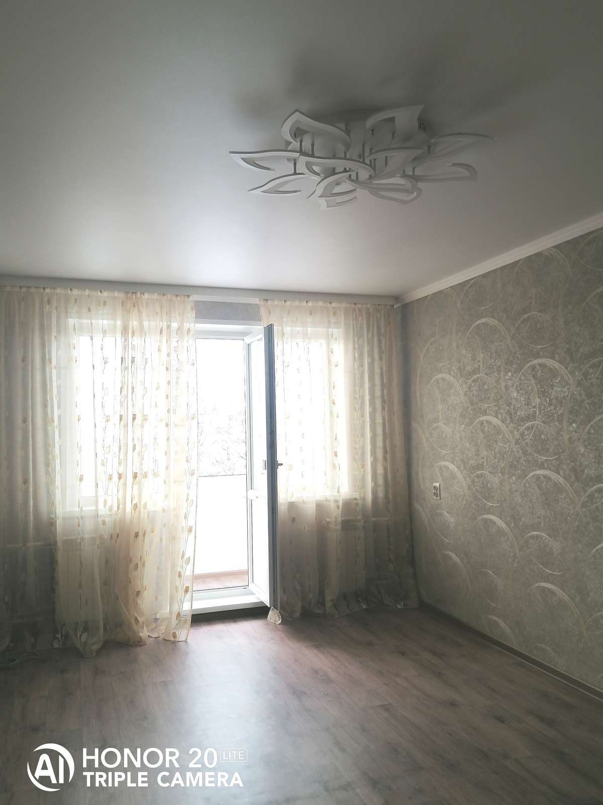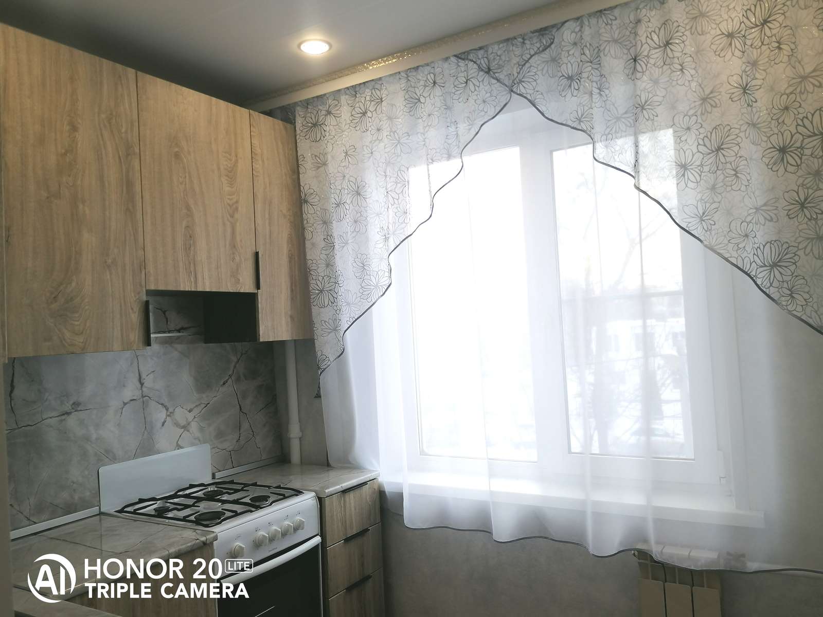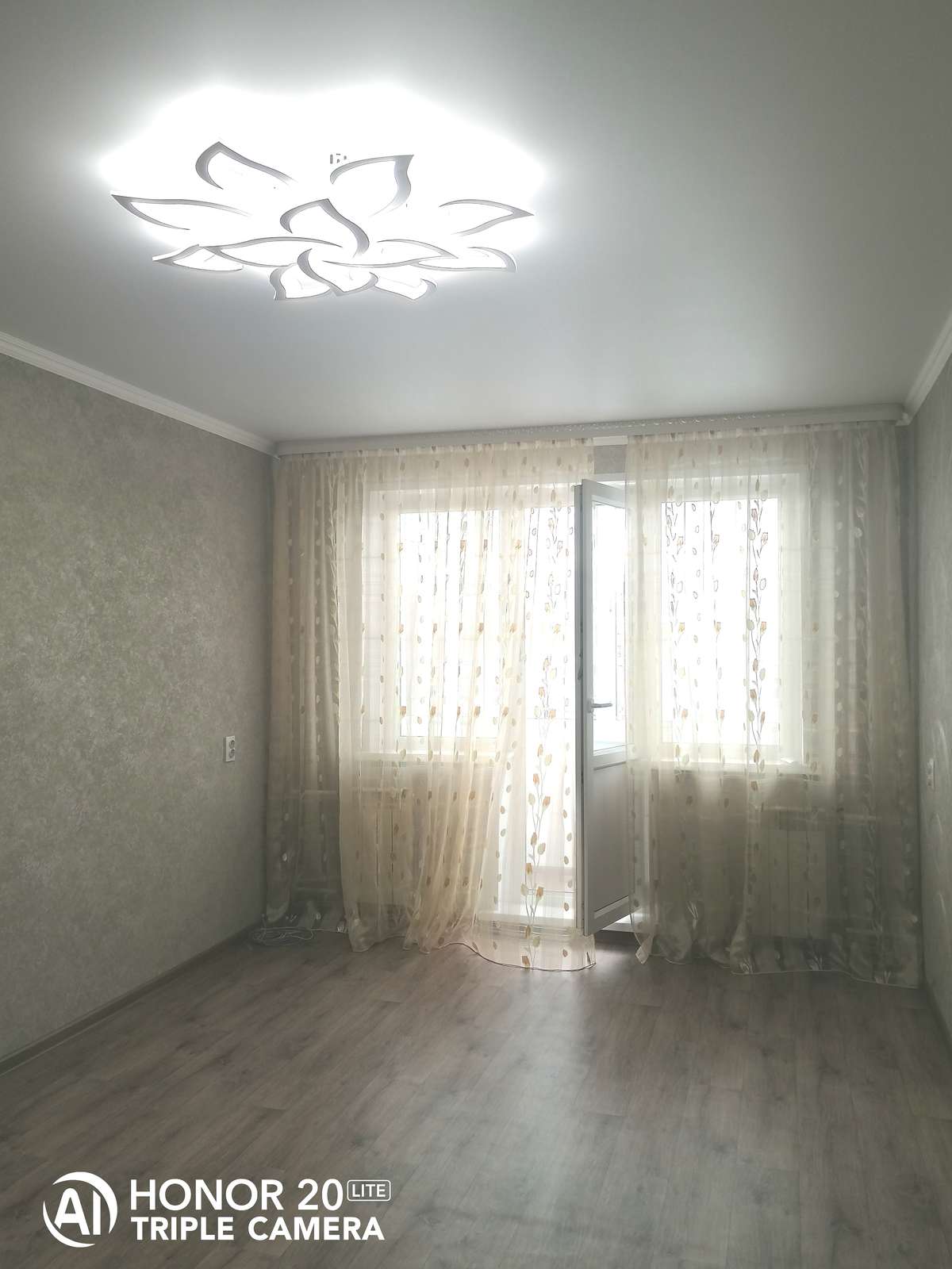 Встроенная новая кухня. Вся квартира оснащена красивыми осветительными приборами и шторами на окнах. Полы выравнены, укреплены панелью осб, покрытие - коммерческий линолеум.