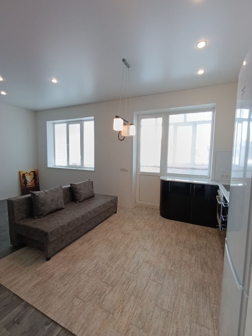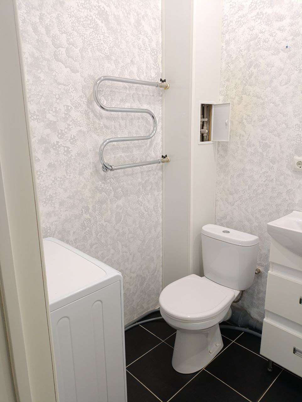 Студия в современном стиле с хорошим ремонтом, полностью с мебелью и техникой, по сантехнике сделано всё по уму, качественно. Отопление, тёплые полы.