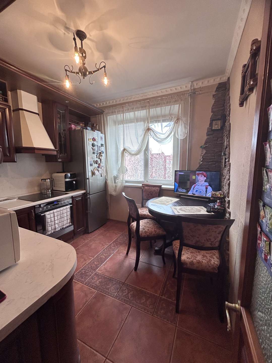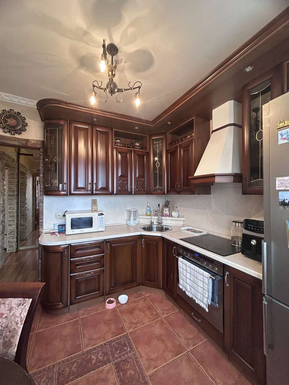 - техника на кухне: холодильник, варочная панель, духовой шкаф, вытяжка,
