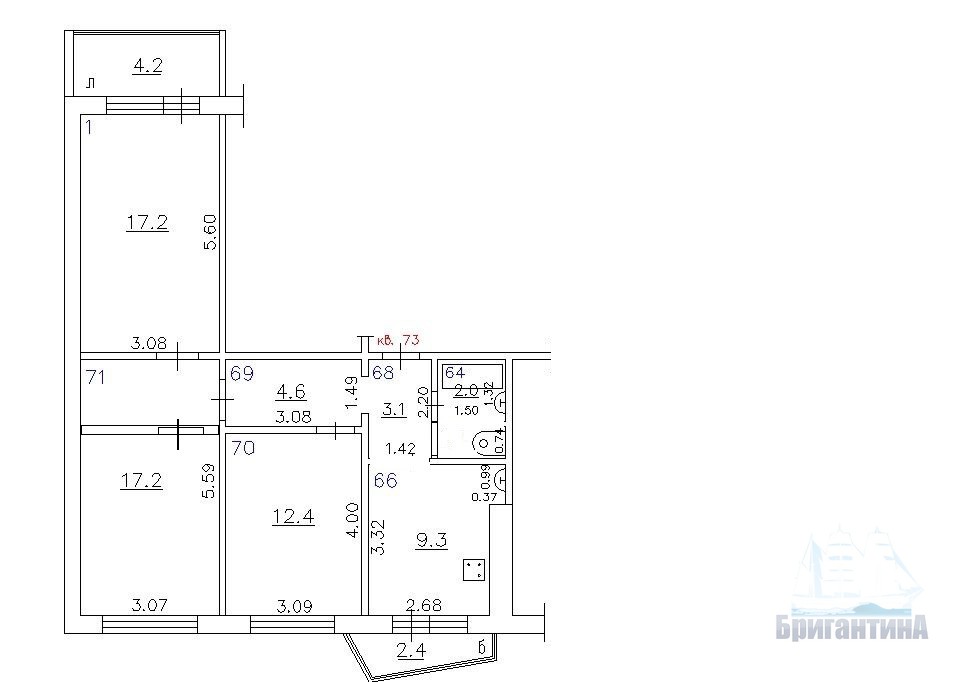 Продажа 3-ком. квартиры 73.5м²