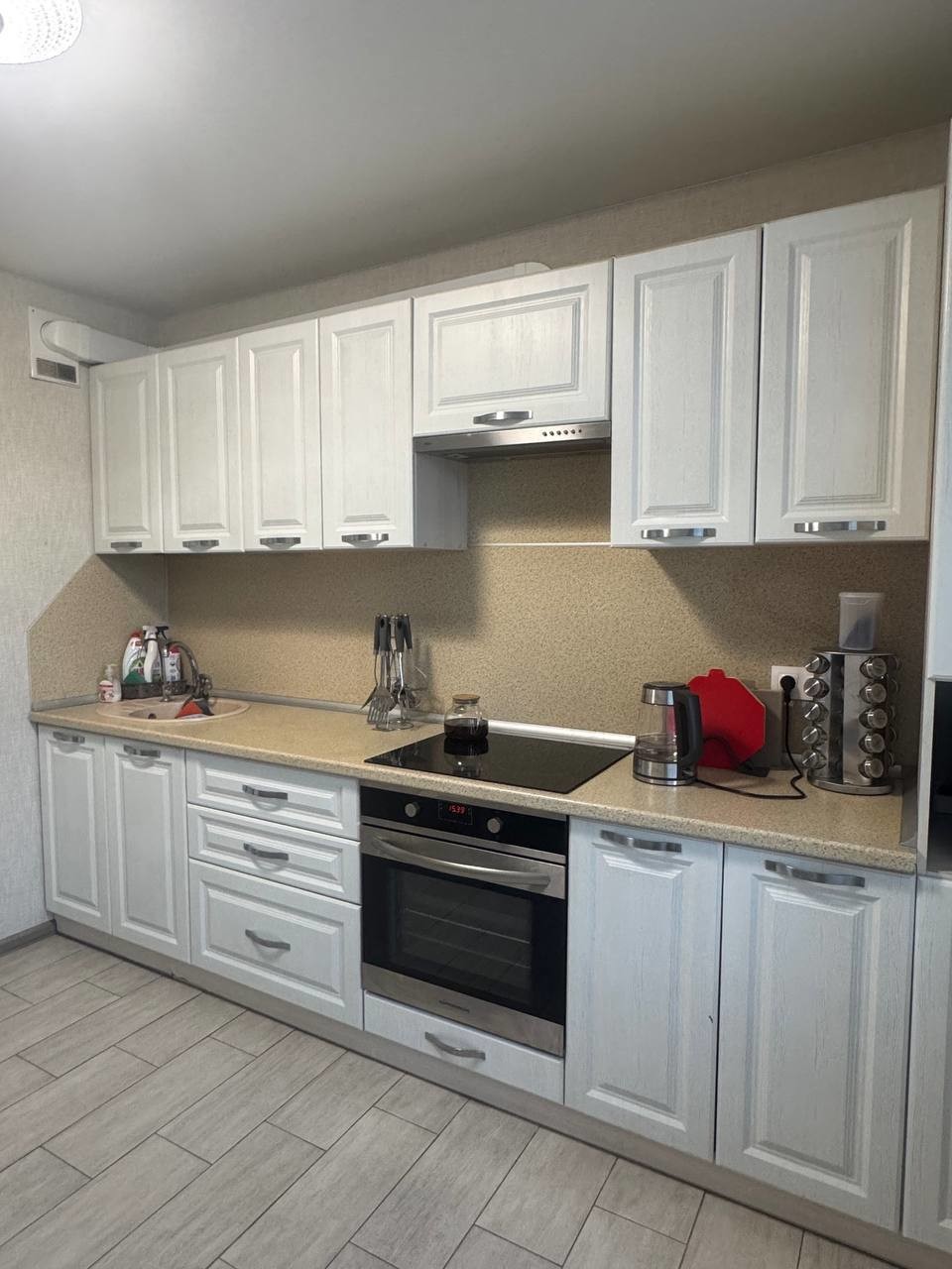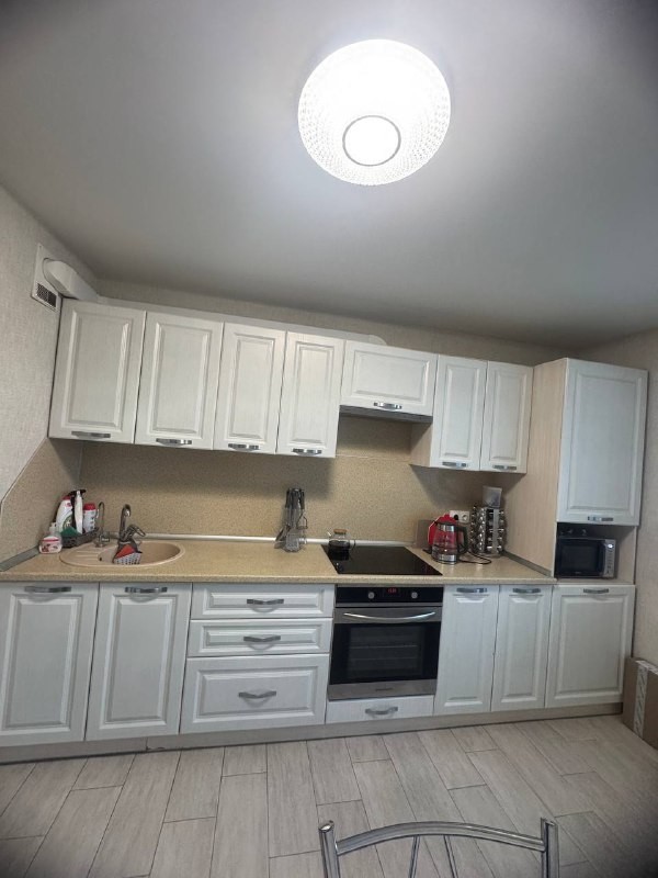 Остается кухонный гарнитур, обеденная зона, шкаф-купе.