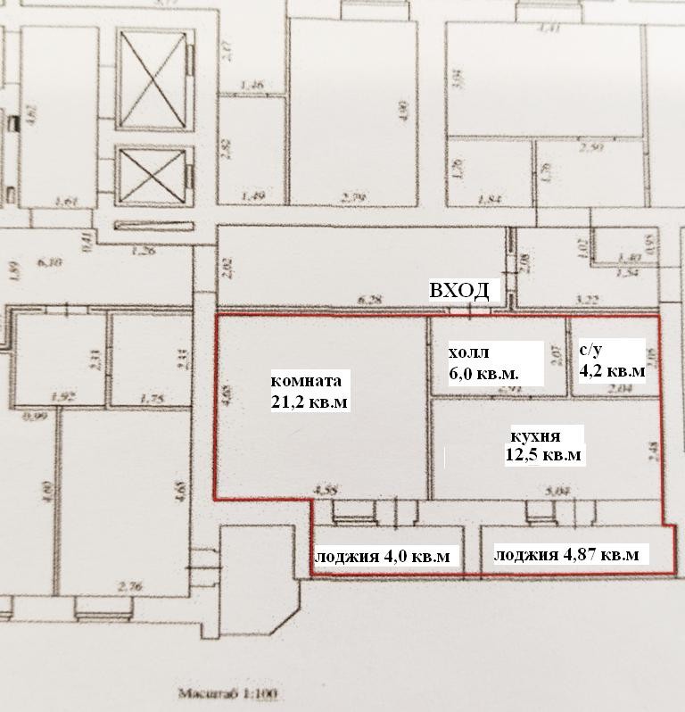 | Площадь, м² | 43/21/12 |