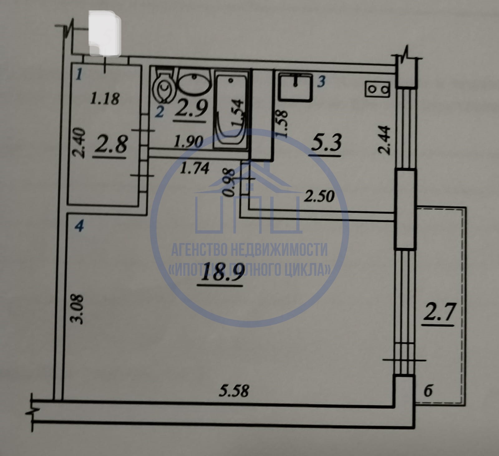 Общая площадь : 29,9 кв. м
