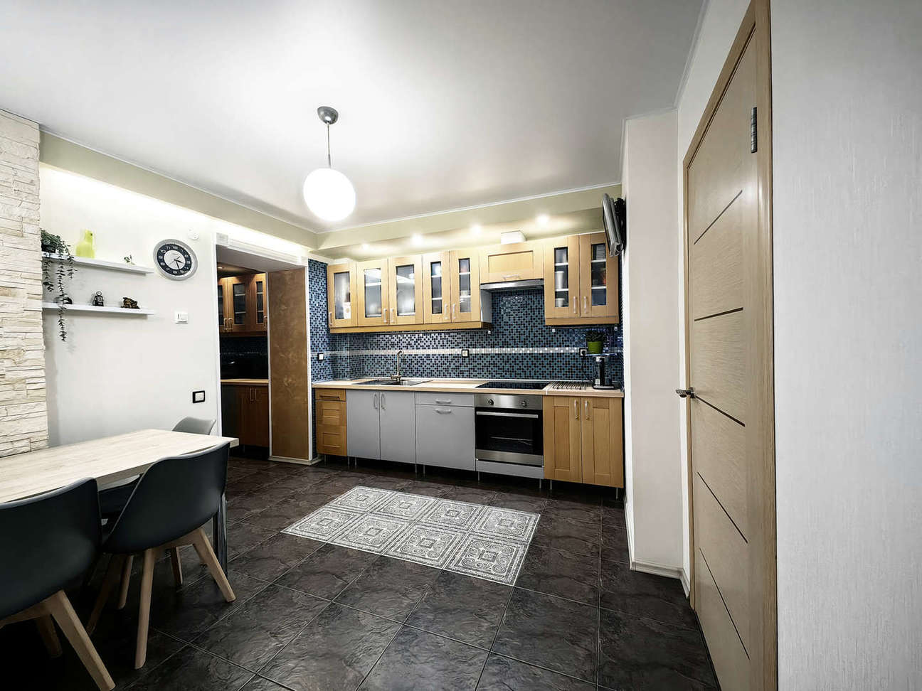 ! Уютная кухня с функциональным пространством, оборудованная встроенной техникой , позволяет комфортно разместить всё необходимое