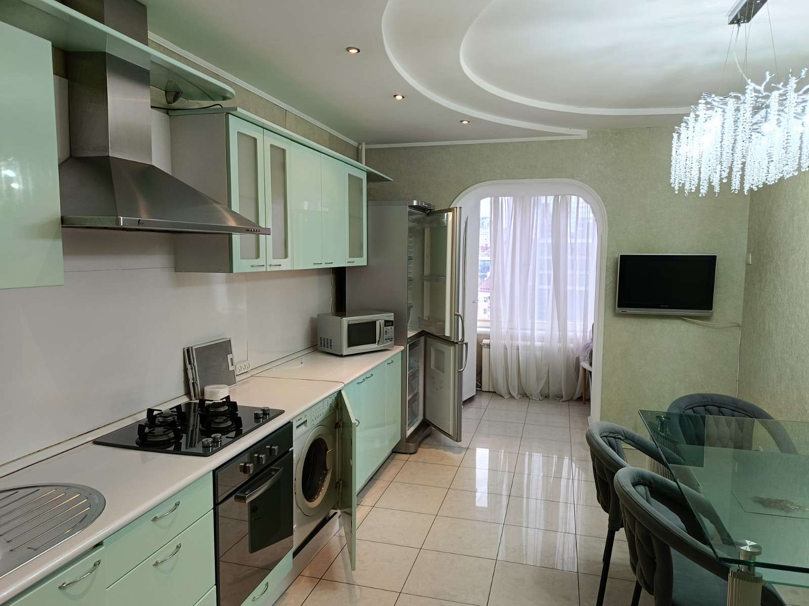 В квартире сделан хороший ремонт (кафель, ламинат,окна ПВХ, сплит-системы,2 шкаф-купе). Есть вся необходимая мебель и техника: Кухонный гарнитур со встроенным духовым шкафом и микроволновкой, вытяжкой. Холодильник, СМА. 50т.р.+комплатежи+счетчики.Залог 25тр можно на 3 месяца разделить.