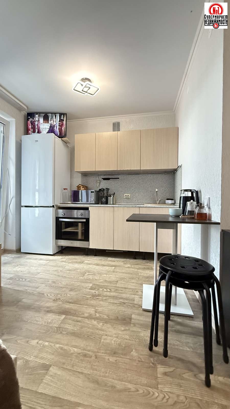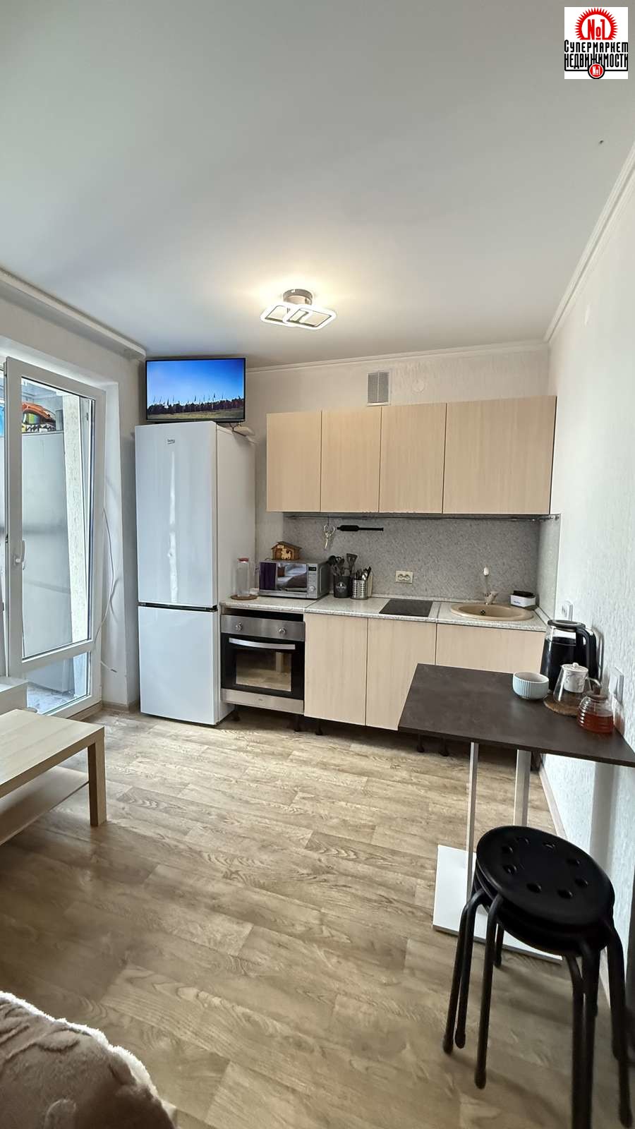 При продаже остаётся встроенная кухня с техникой, шкаф в коридоре,