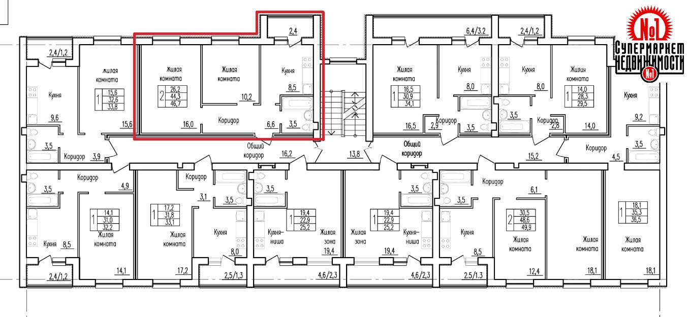 | Площадь, м² | 44/26/8 |