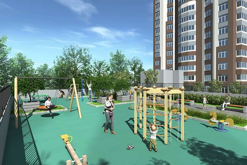 - На крыше паркинга расположена детская и спортивная площадки .