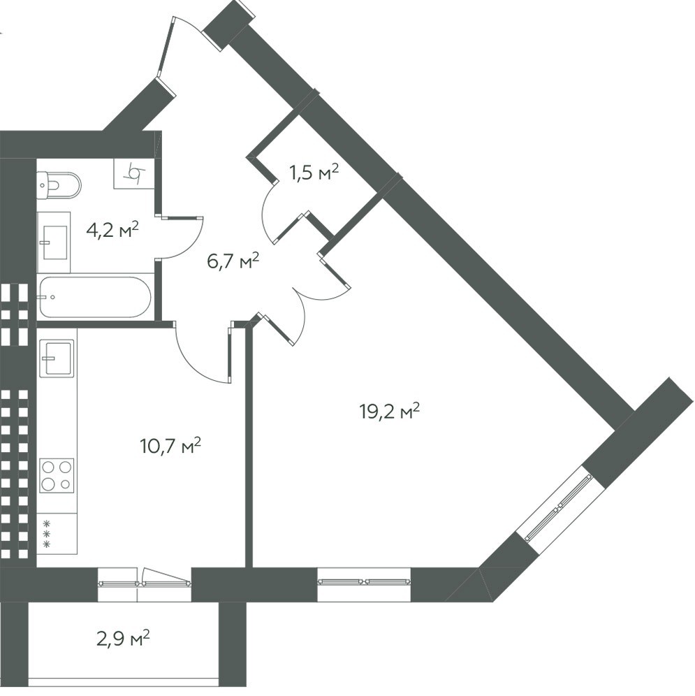 Комнаты изолированные, комфортная планировка: площадь комнаты 19,20 кв.м., кухня 10,70 кв.м., лоджия из кухни.