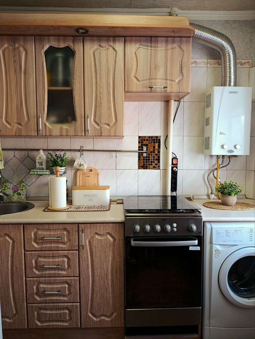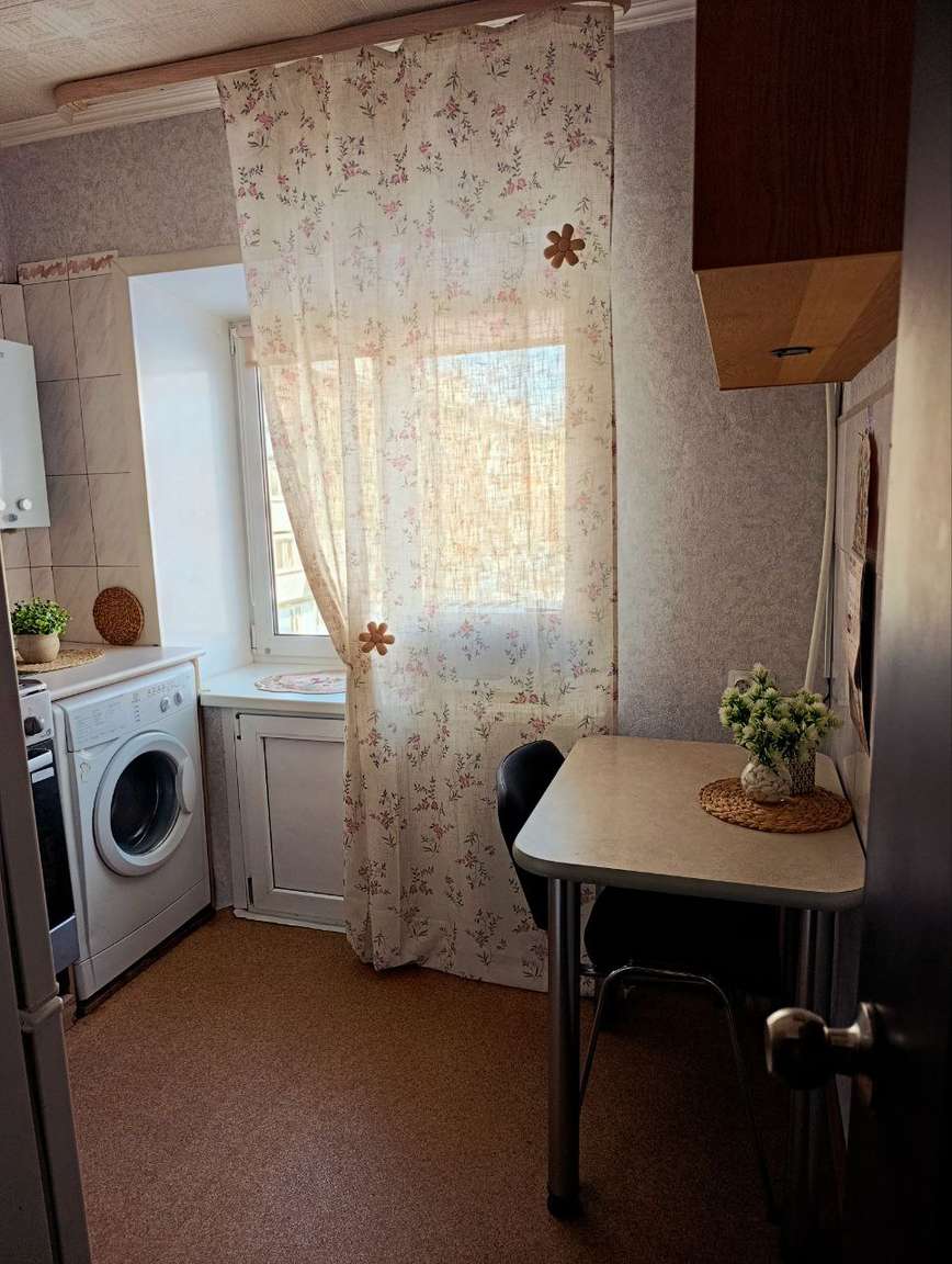 Теплая и солнечная квартира с хорошим косметическим ремонтом. На полу линолеум и плитка, окна ПВХ, новые радиаторы, санузел выложен плиткой. Без балкона. Не угловая. Остаётся вся мебель и техника. Удобное расположение, рядом детский сад и школа, поликлиника, магазины, в шаговой доступности остановка общественного транспорта, мини-рынок, аптеки, филиал Сбербанка. Двор закрыт от шума и улиц с хорошей площадкой.