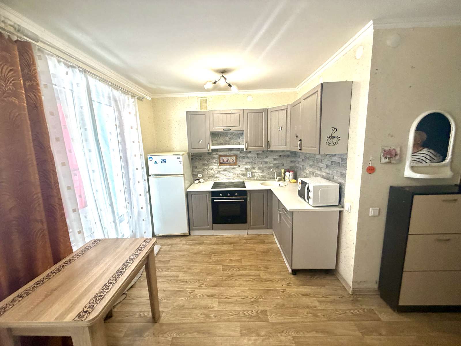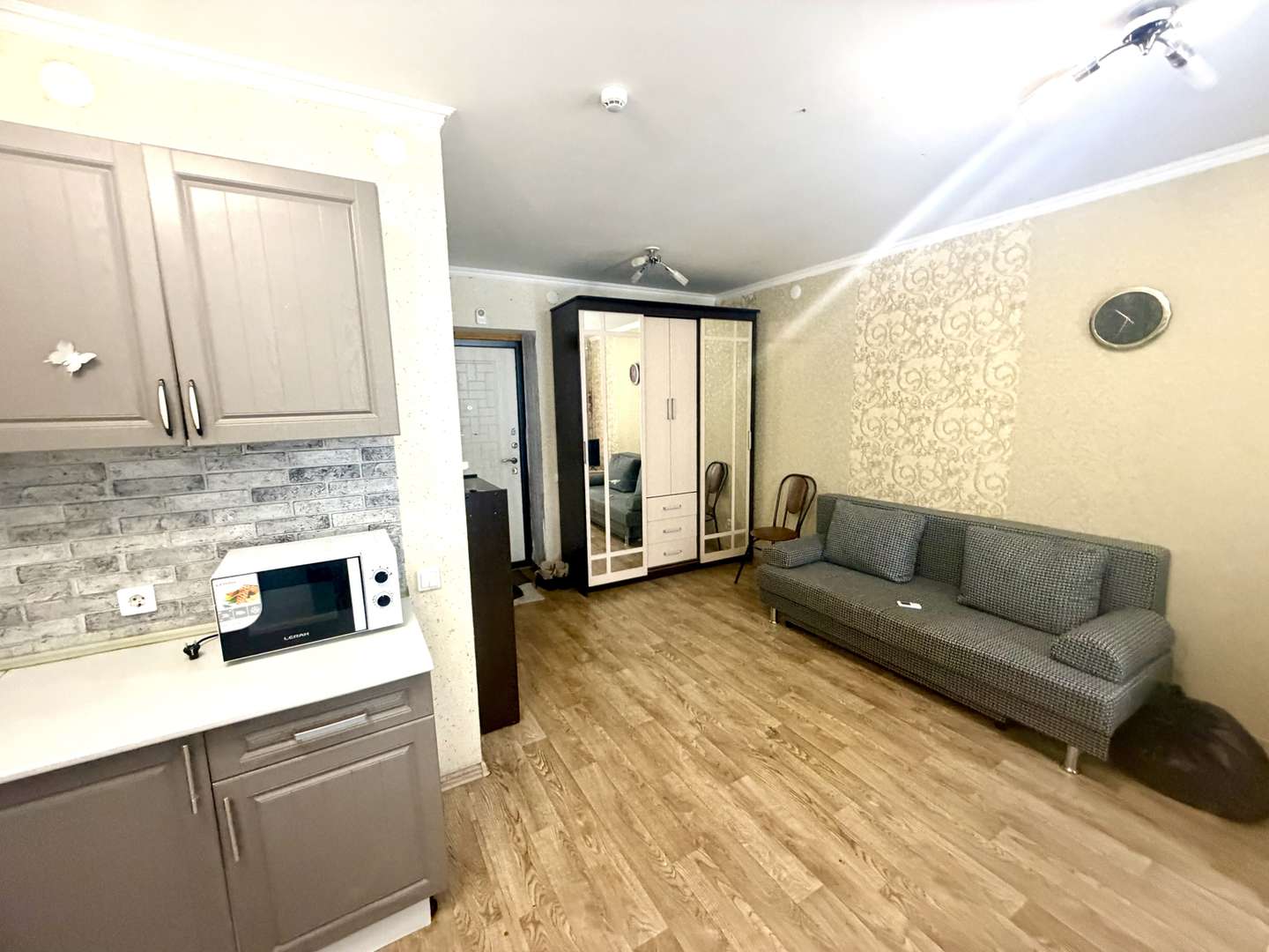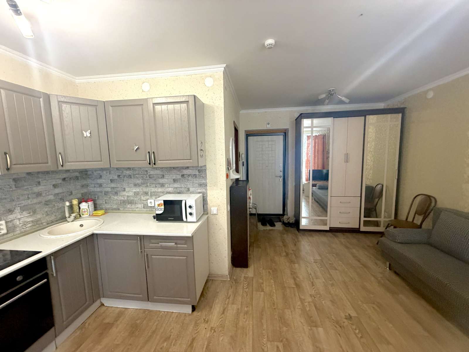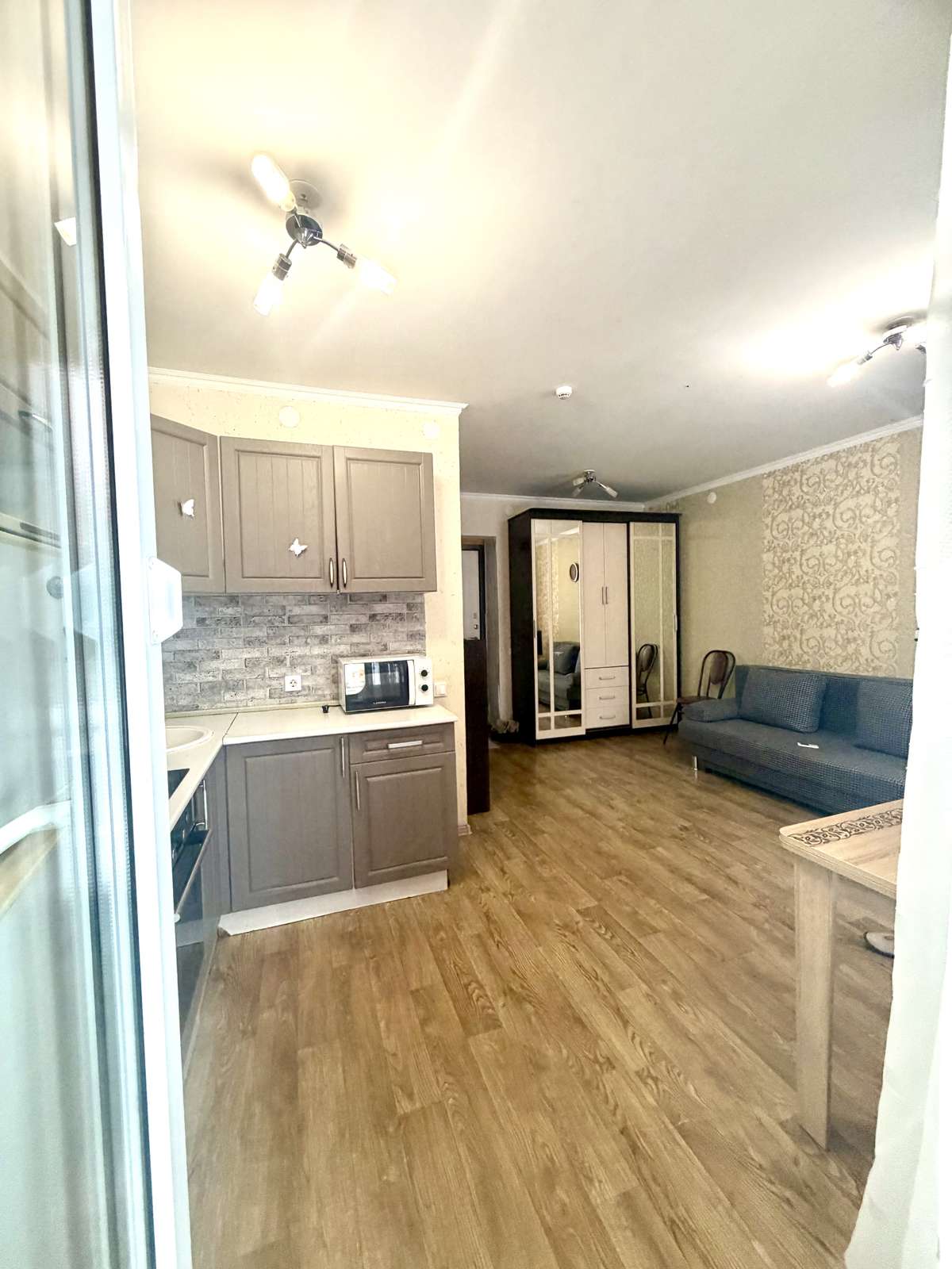 Квартира студия, теплая , светлая, уютная. Большая застекленная лоджия. Остается вся мебель и техника. Кухонный гарнитур, шкаф купе, диван и и т.д… заезжай и живи!