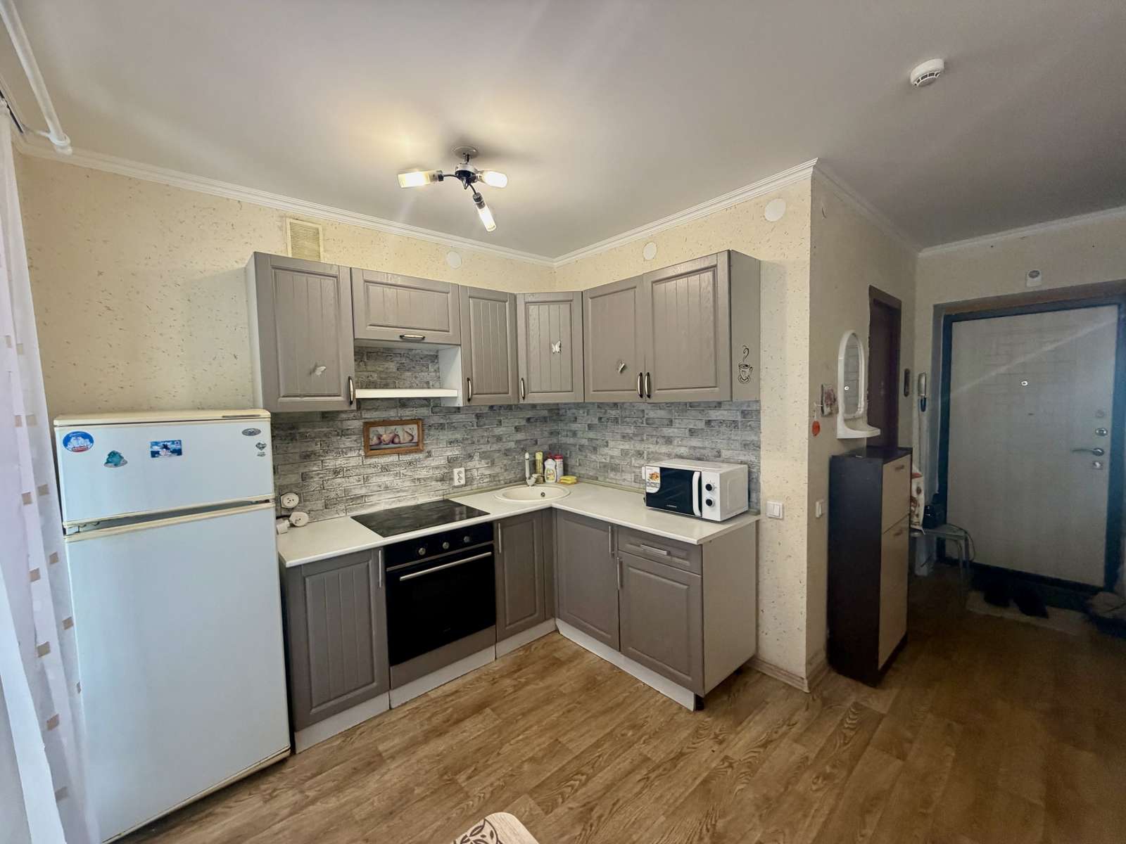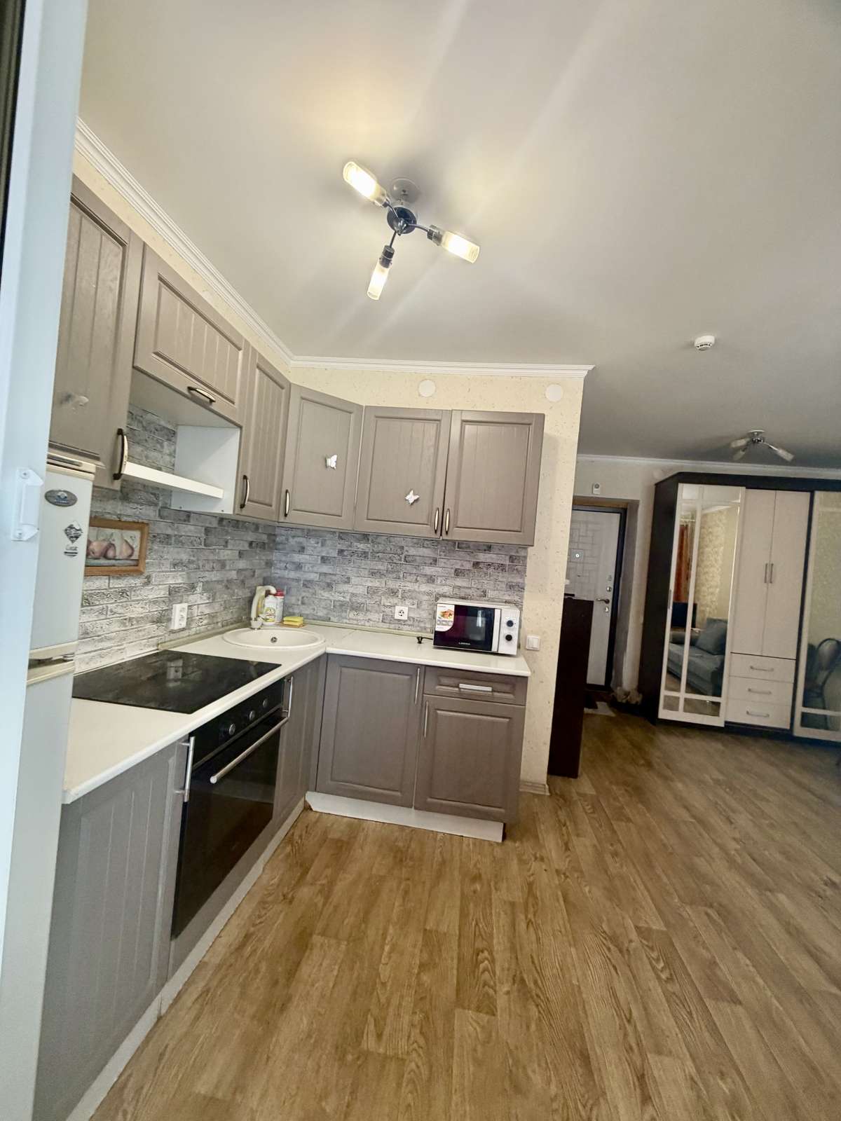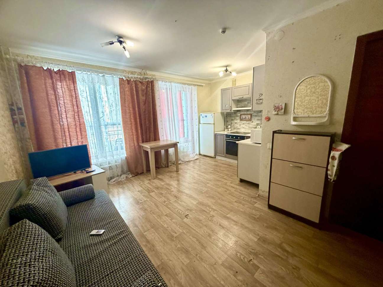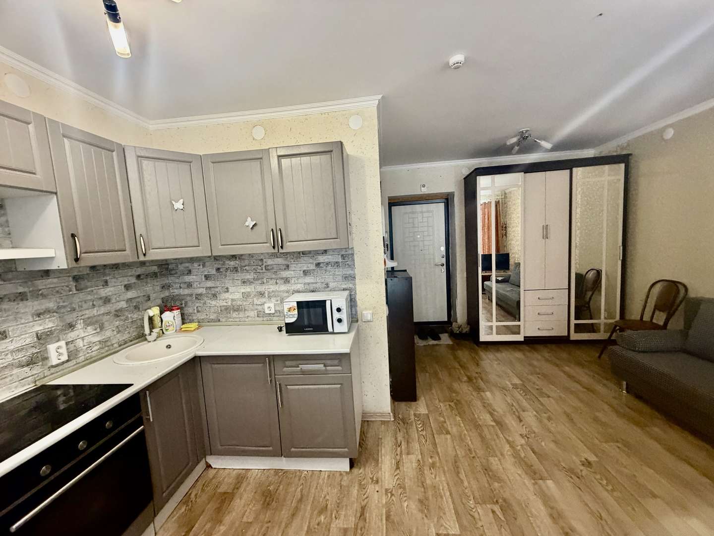 Квартира студия, теплая , светлая, уютная. Большая застекленная лоджия. Остается вся мебель и техника. Кухонный гарнитур, шкаф купе, диван и и т.д… заезжай и живи!