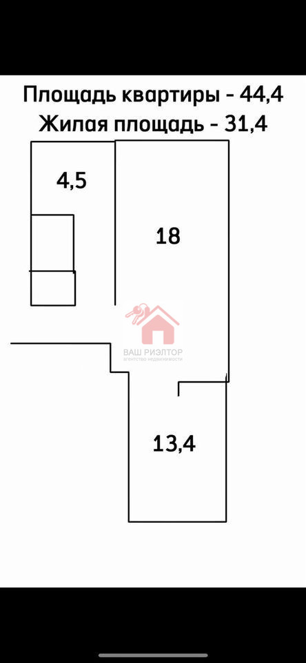 | Площадь, м² | 44/31/4 |