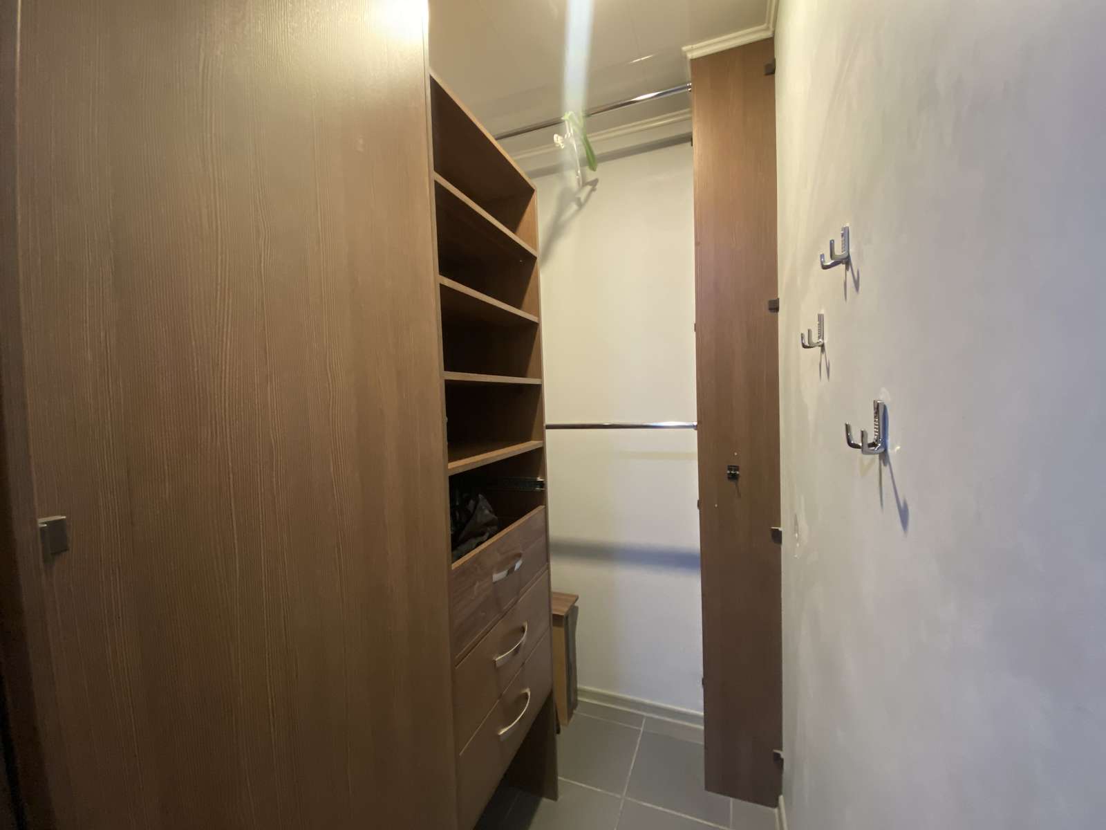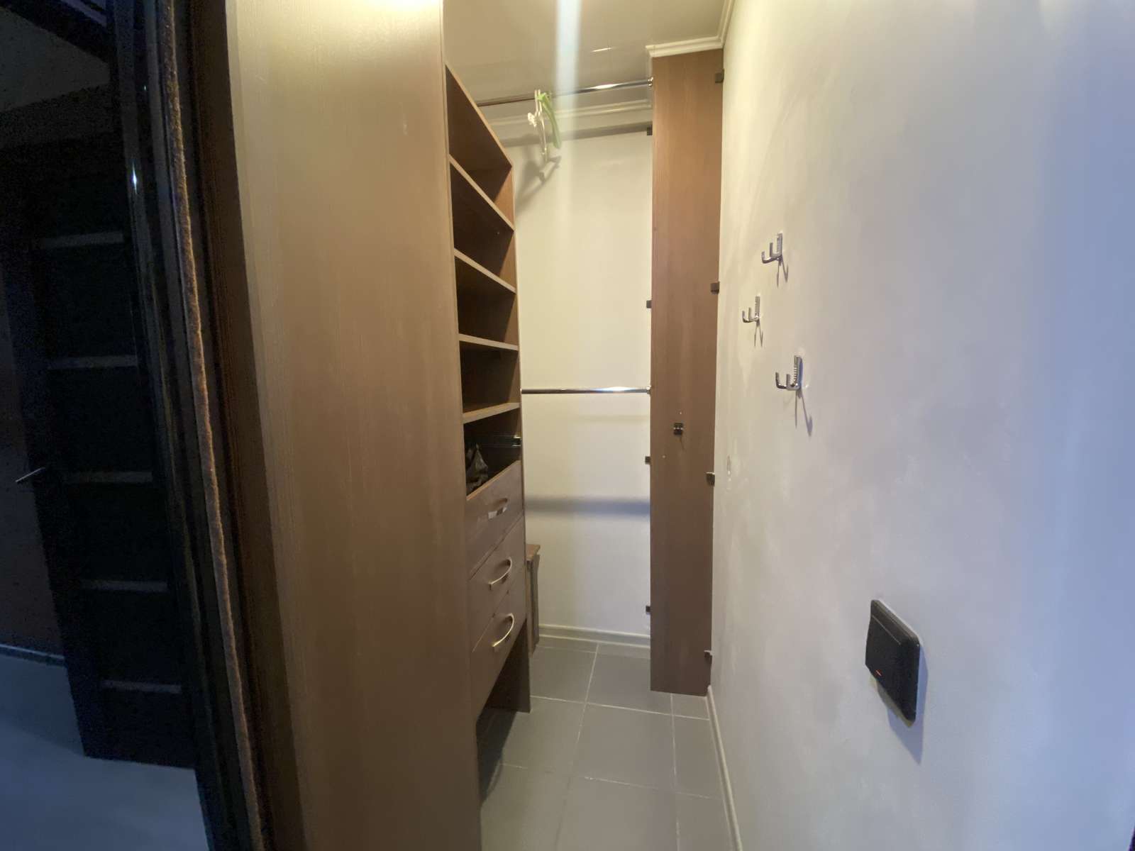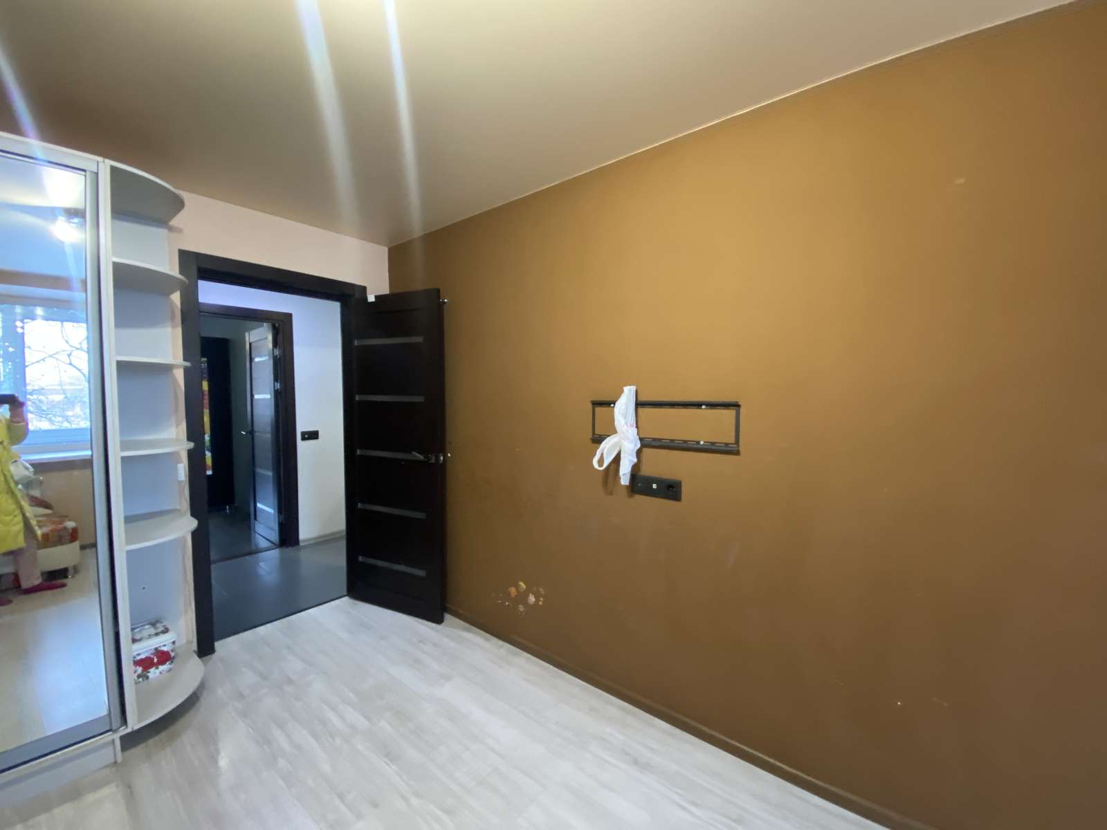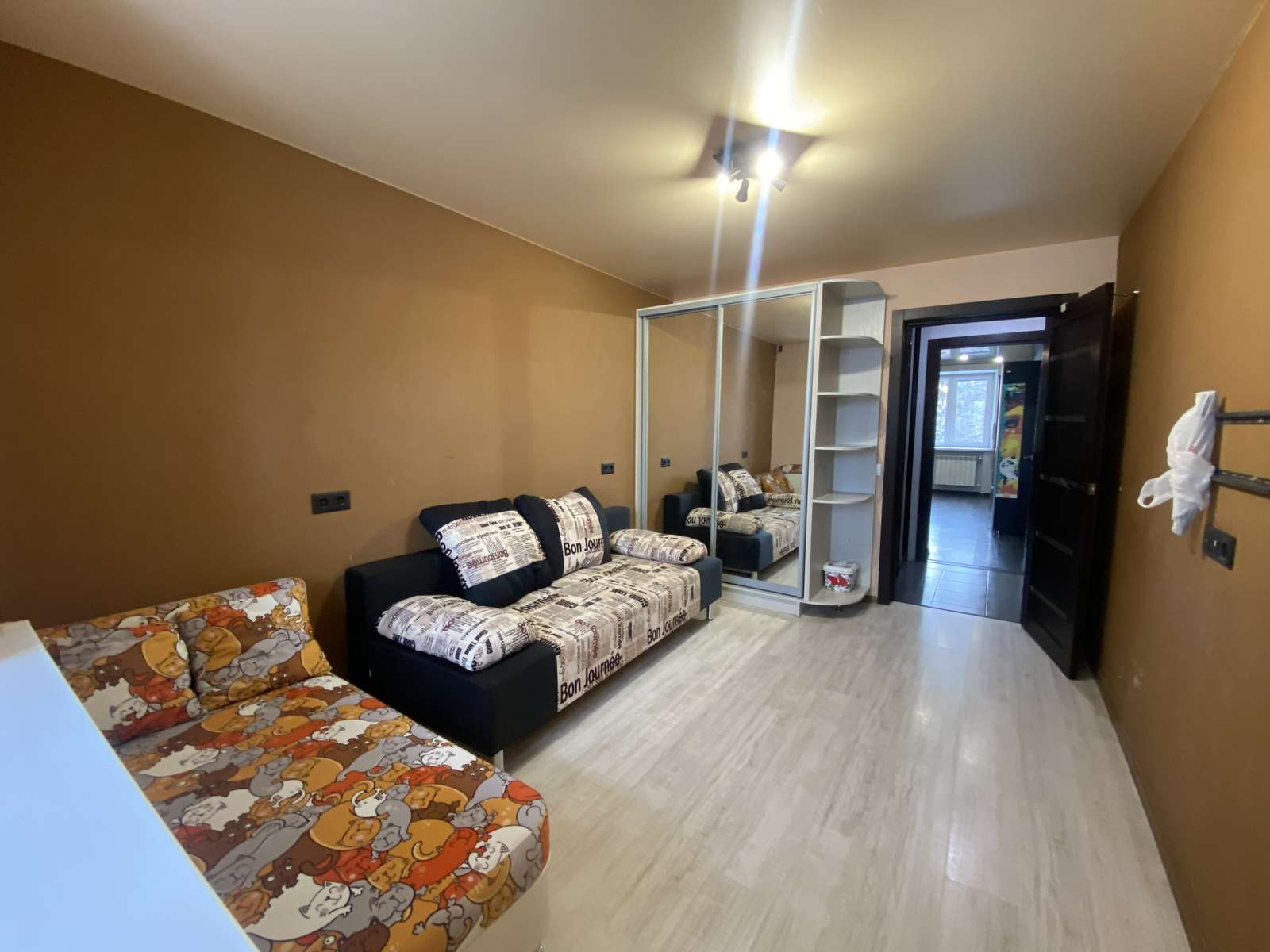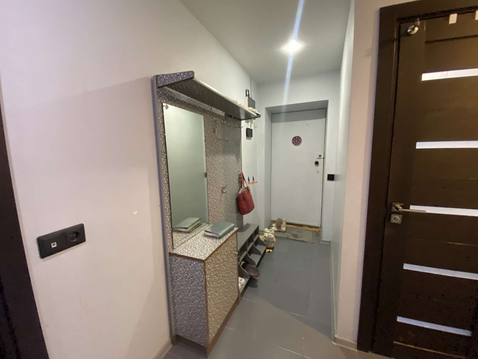 В коридоре оборудована гардеробная с большим зеркалом.