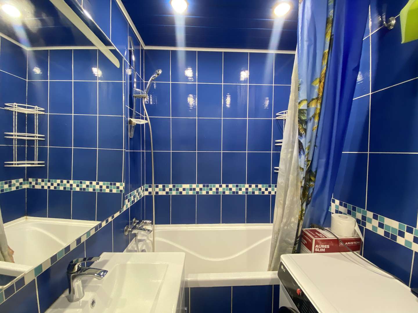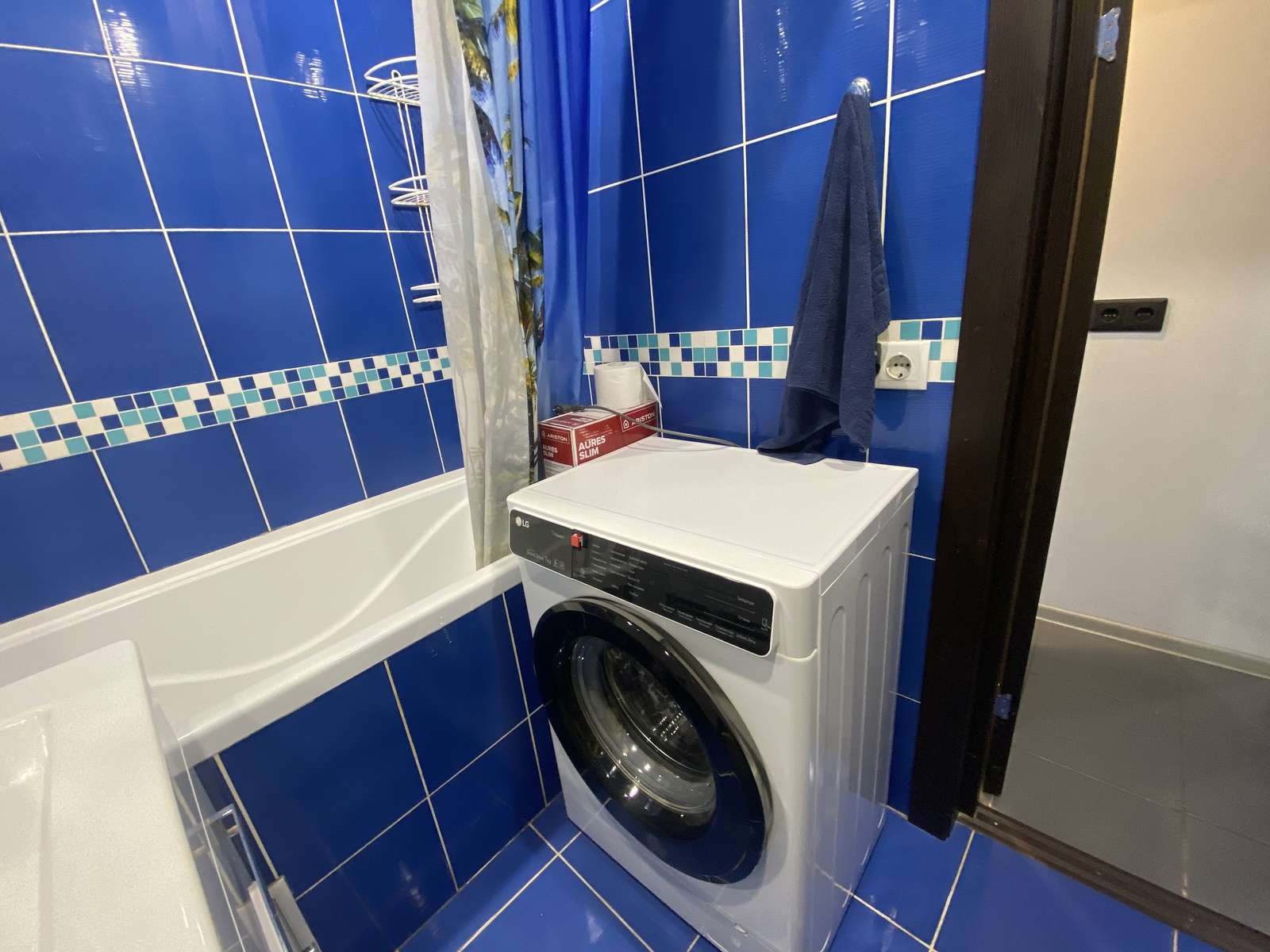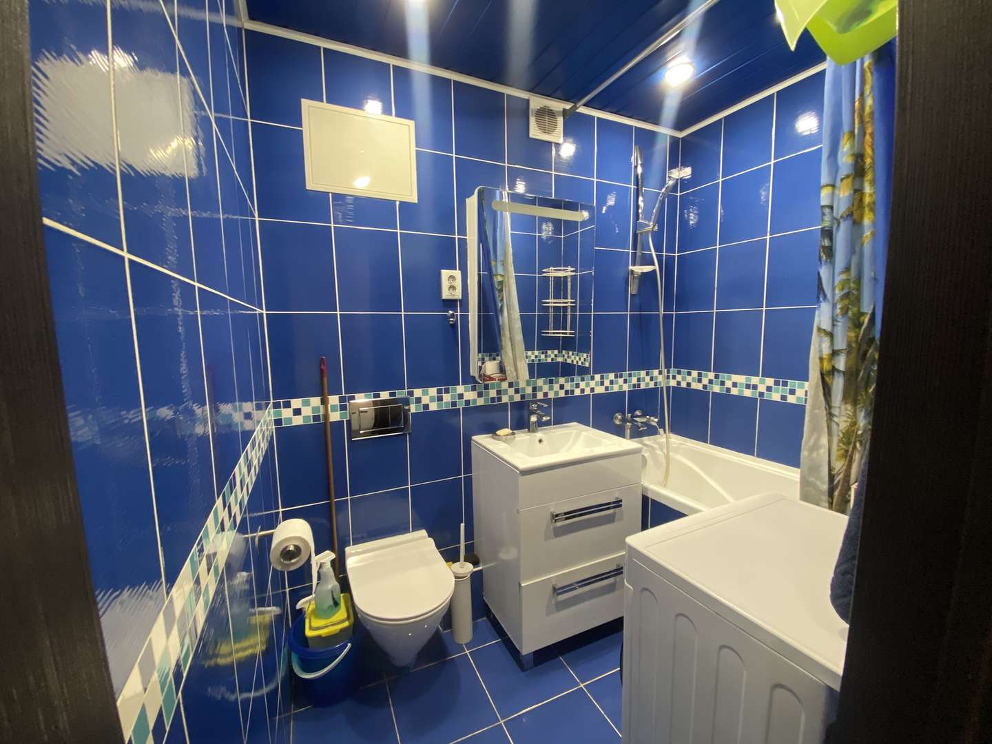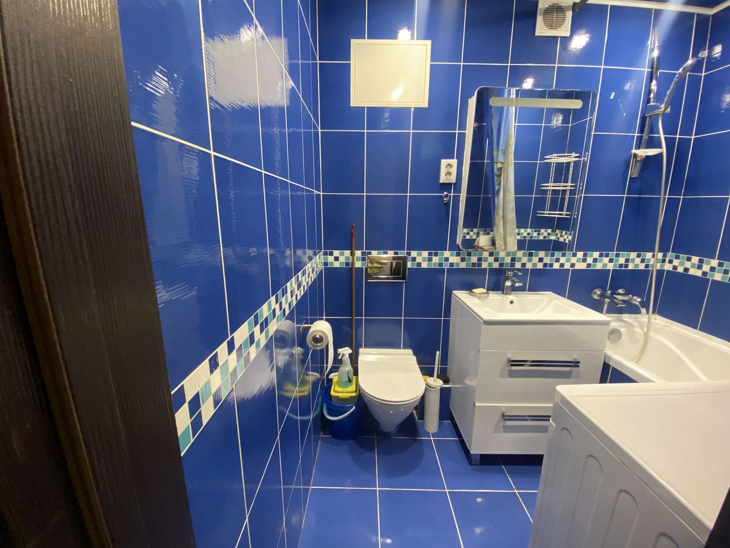 Ванная комната совмещена с туалетом, установлена стиральная машина-автомат.