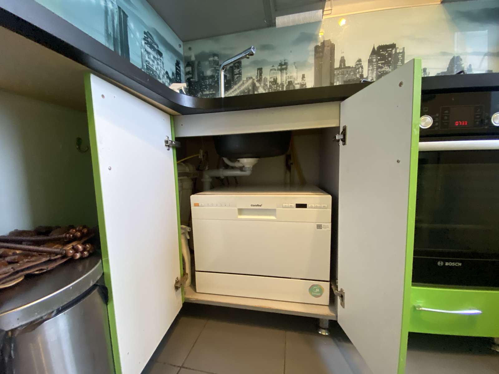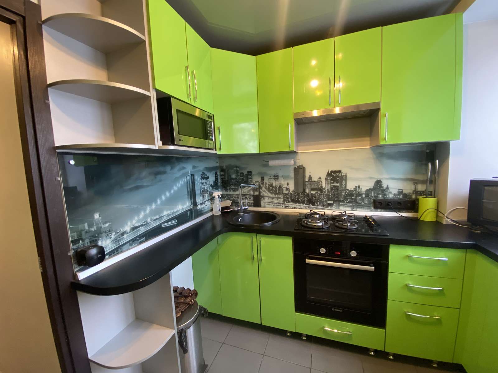 Кухня оснащена всей необходимой техникой ,включая посудомоечную машину.