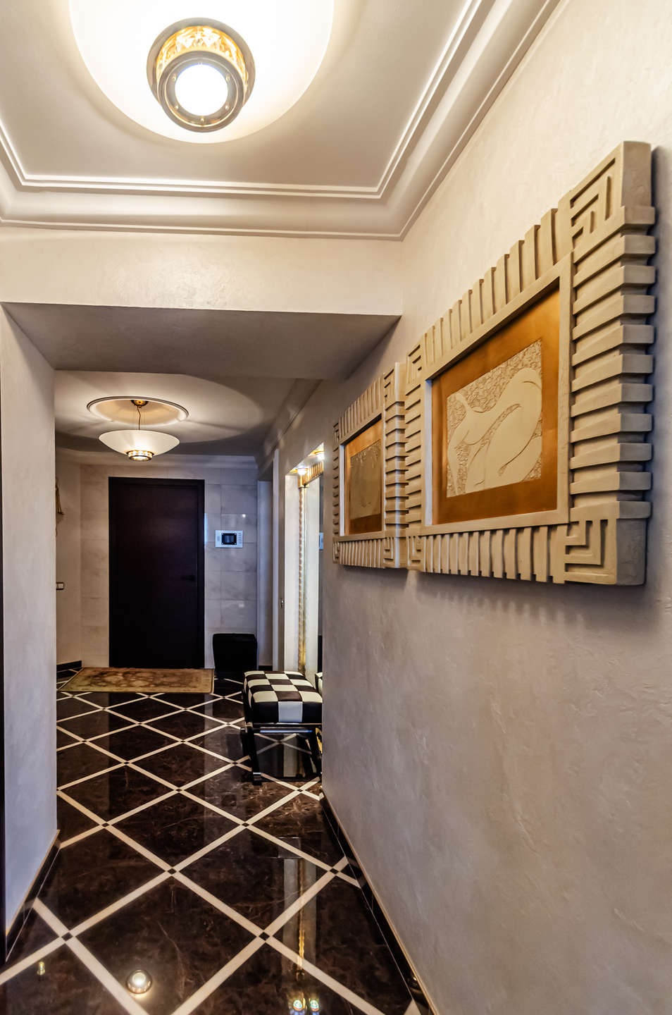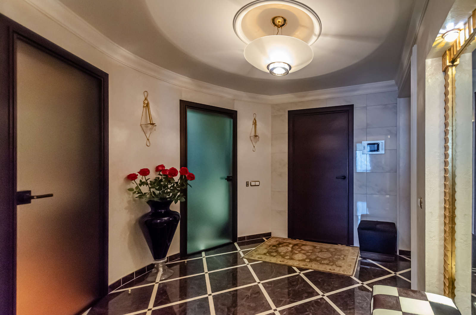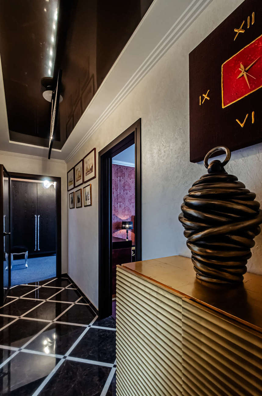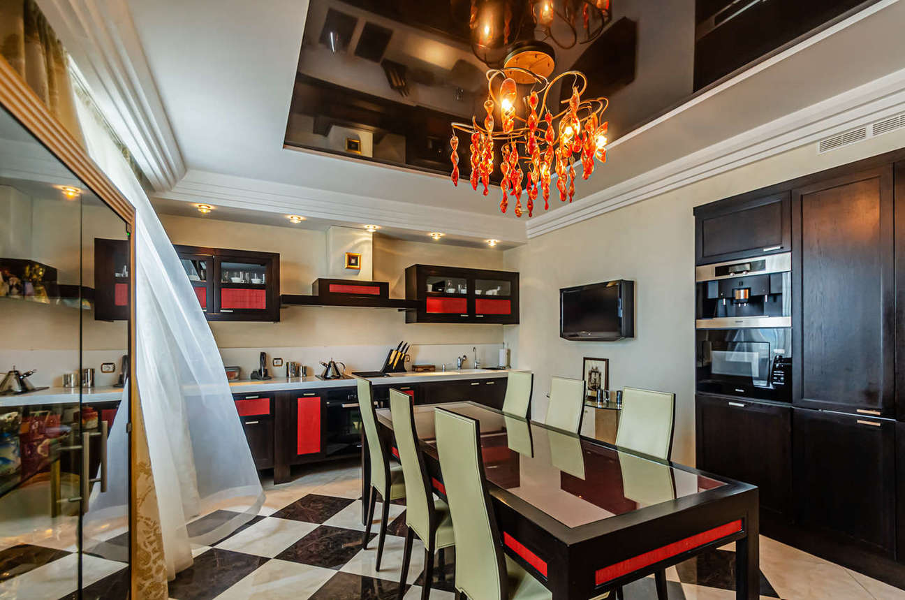 Ремонт выполнен в классическом стиле Арт-деко с применением высококлассных зарубежных отделочных материалов, сантехники Villeroy & Boch, итальянских межкомнатных дверей, смонтирована система центрального пылесоса, установлены мраморные подоконники, встроенная техника Mille (свч-печь, встроенная кофемашина, эл.плита, духовой шкаф, эл. гриль, посудомоечная машина), кондиционеры Daikin, свет люстры и светильники Swarovski, домашний кинотеатр.