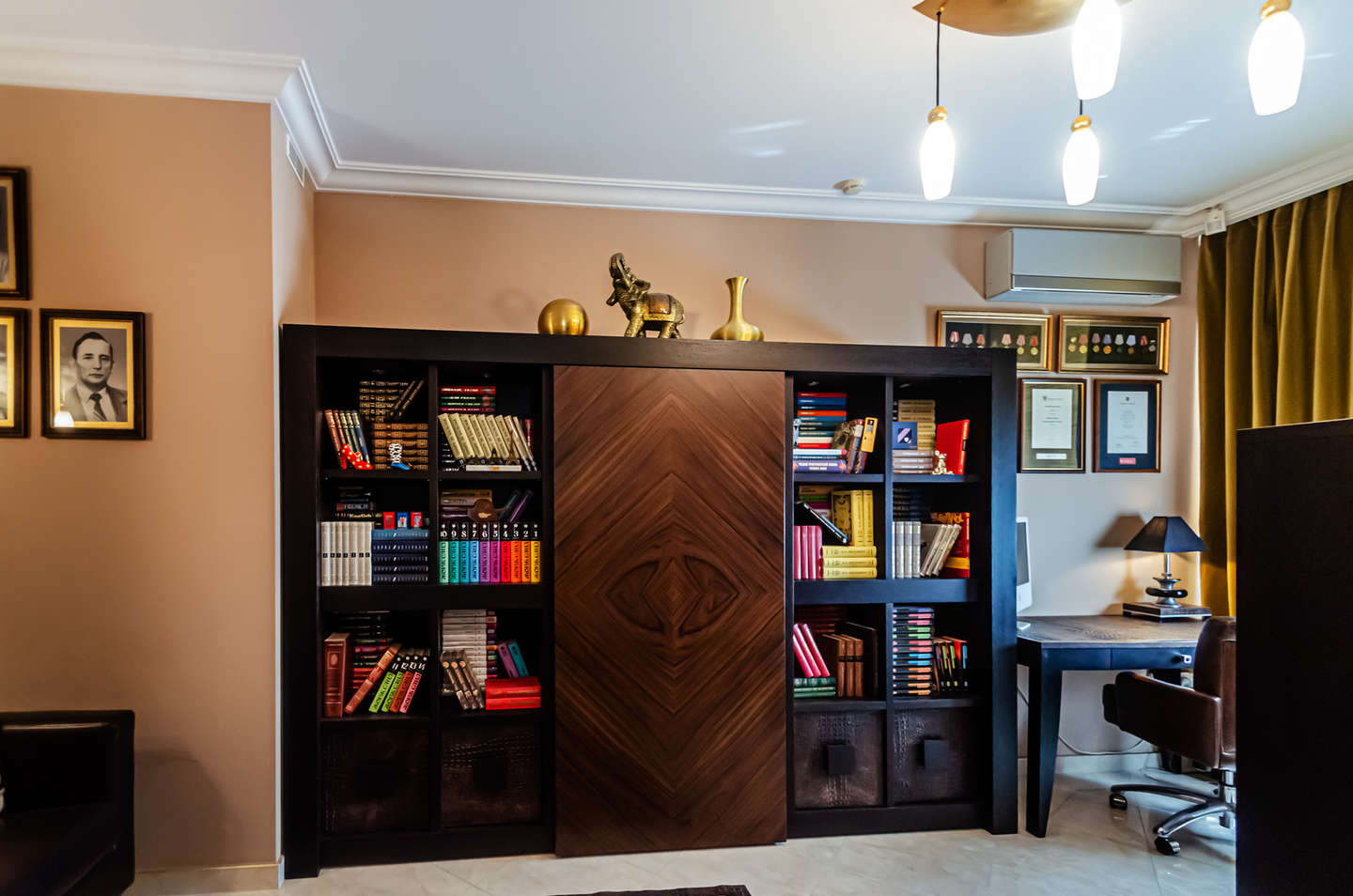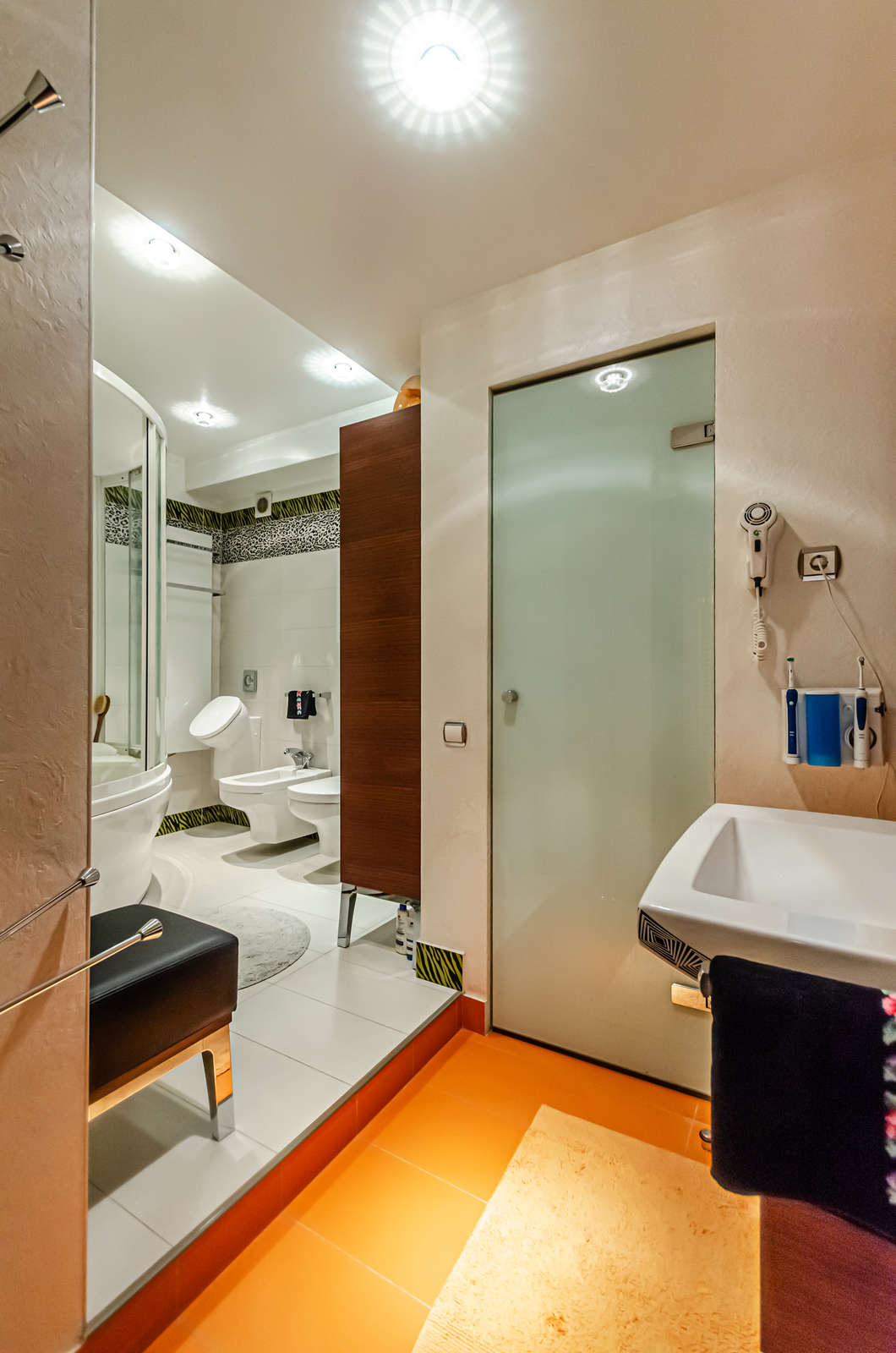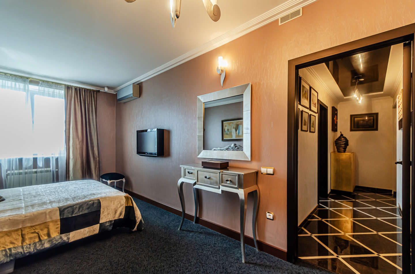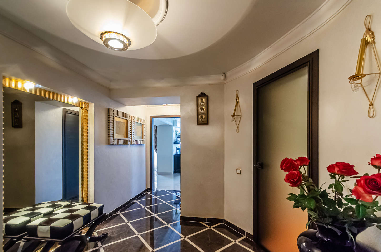 Ремонт выполнен в классическом стиле Арт-деко с применением высококлассных зарубежных отделочных материалов, сантехники Villeroy & Boch, итальянских межкомнатных дверей, смонтирована система центрального пылесоса, установлены мраморные подоконники, встроенная техника Mille (свч-печь, встроенная кофемашина, эл.плита, духовой шкаф, эл. гриль, посудомоечная машина), кондиционеры Daikin, свет люстры и светильники Swarovski, домашний кинотеатр.