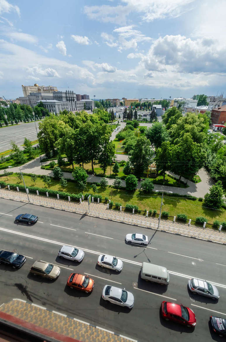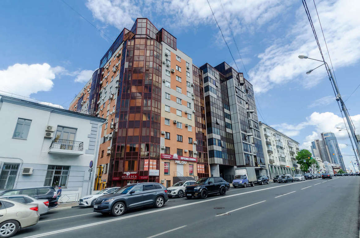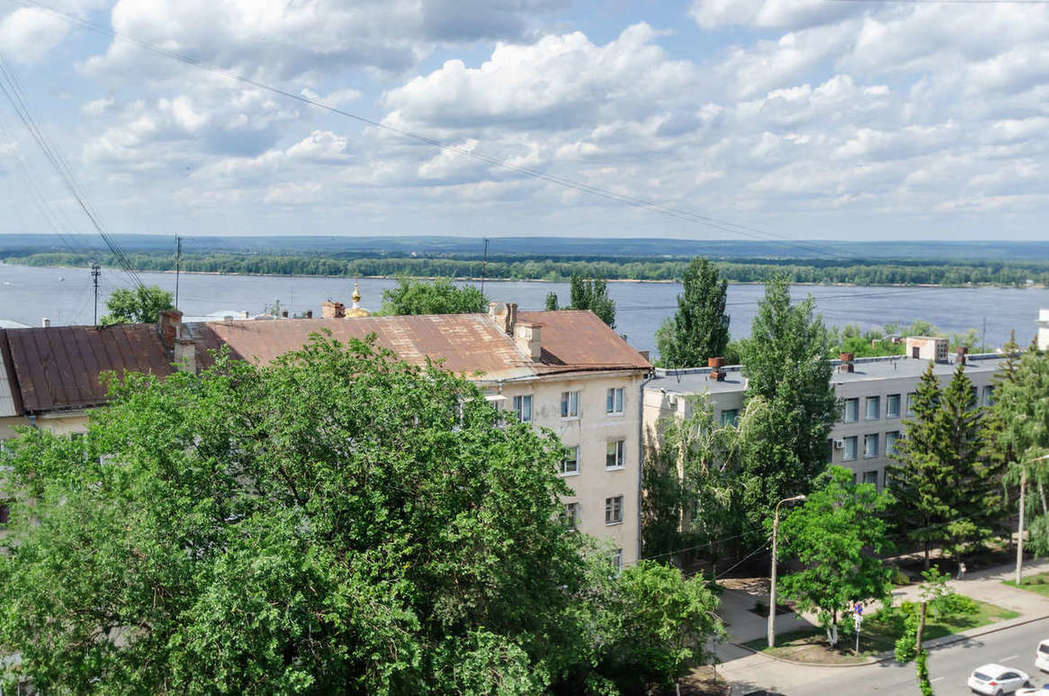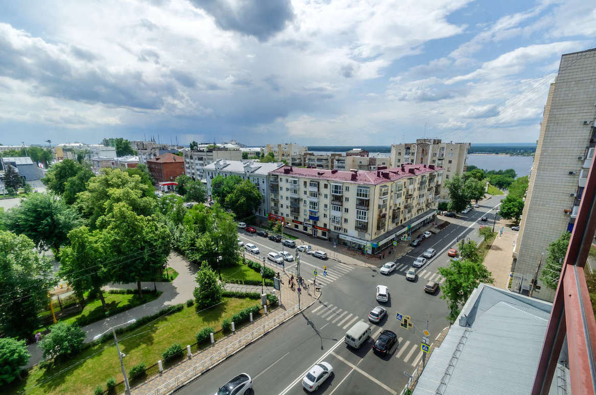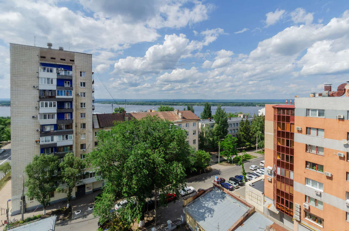 Квартира расположена в кирпичном элитном жилом доме с видом на площадь Куйбышева и реку Волга, в историческом центре города Самара, рядом театры Оперы и Балета, Драматический театр им. Горького, английская гимназия №11.