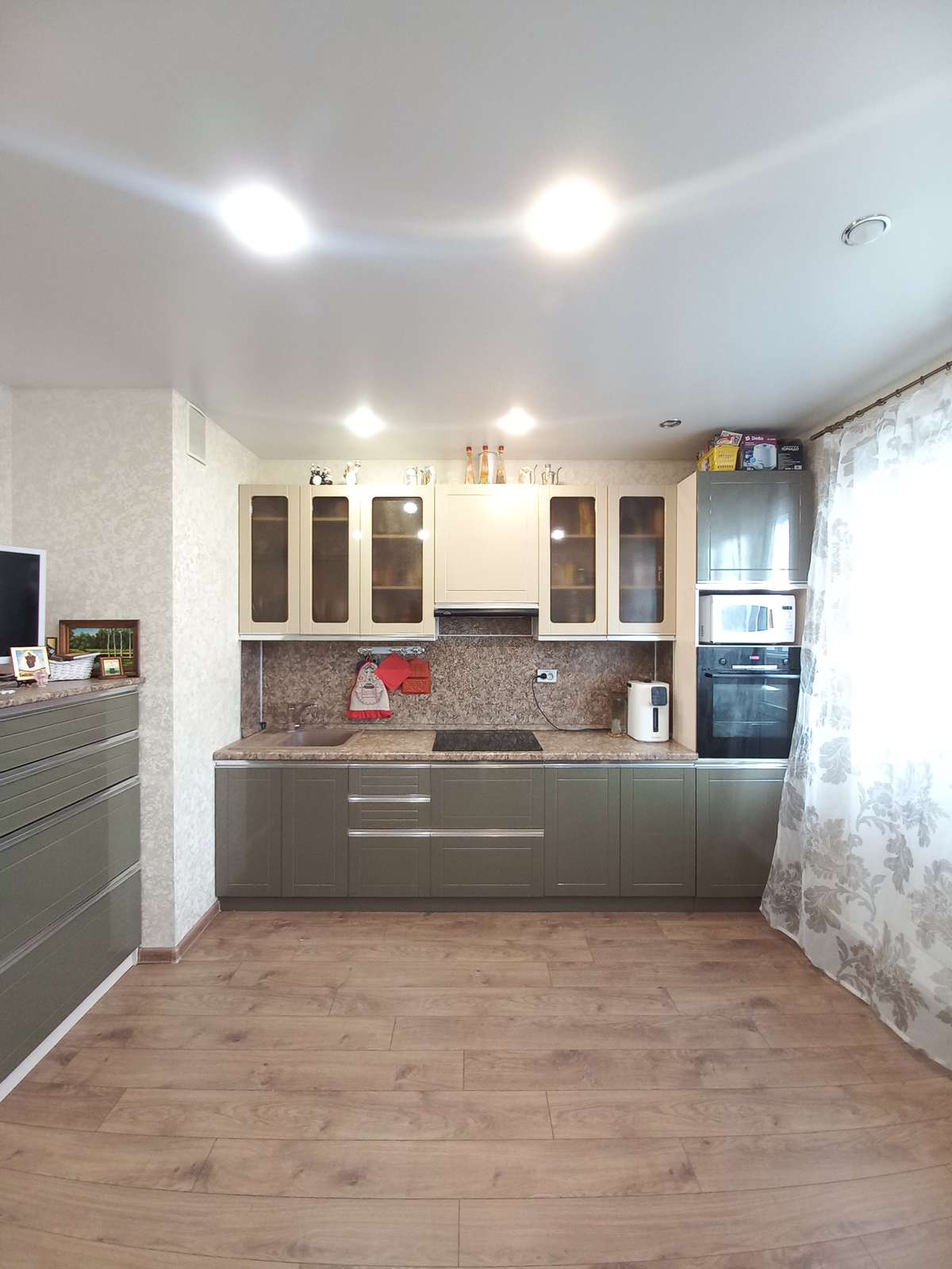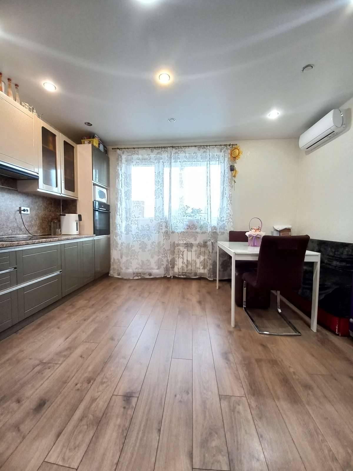Остается: кухонный гарнитур, варочная панель, духовой шкаф, вытяжка, прихожая, стенка, кондиционер, водонагреватель.