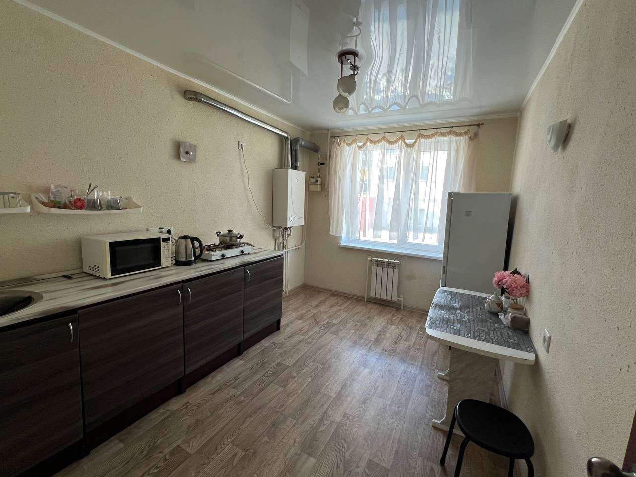 Просторная кухня площадью 10 м² оборудована всем необходимым для комфортного приготовления пищи. В комнате установлен вместительный шкаф-купе, что обеспечивает дополнительное место для хранения вещей.Санузел совмещённый, оформлен в светлых тонах, оснащён современной сантехникой. Из окон открывается приятный вид на зелёный двор с детской площадкой. Дом расположен в тихом районе с развитой инфраструктурой, рядом находятся магазины и остановки общественного транспорта.Квартира находится на первом этаже трёхэтажного здания, что особенно удобно для семей с детьми или пожилых людей.