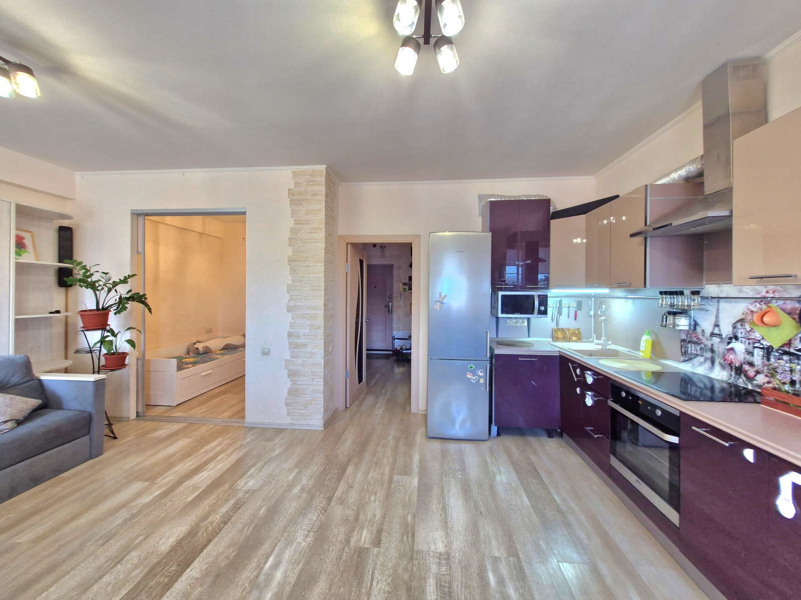 Общий метраж 47 кв.м (с учётом лоджии), жилая 17,5 кв.м, кухня 13,6 кв.м. В квартире сделана грамотная перепланировка без переносов мокрых точек и вмешательства в несущие стены. Из холла вход в гардеробную с удобной системой хранения и совмещенный сан. узел: полностью отделан кафелем, установлена качественная сан техника и смесители, предусмотрены места для хранения бытовой химии и не только, удобный доступ к счетчикам, установлен водонагреватель на 50л (используется довольно редко, так как в доме собственная котельная и отключение воды, крайне редко). Далее идёт просторная кухня-гостиная, находясь в квартире из любой точки Вашему виду открывается прекрасный вид на русло реки и холмы, никаких высотных застроек впереди. Довольно вместительная лоджия, утеплена есть теплый пол и красивая подсветка, создающая атмосферу уюта в вечернее время. В зоне отдыха есть очень удобный диван-кровать-трансформер, с удобным большим матрасом для качественного сна. Так же продумано место, в котором спокойно можно оборудовать детскую, спальню, рабочий кабинет. В кухонной зоне установлен гарнитур с индукционной плитой, есть духовой шкаф, мощная вытяжка и предусмотрено место со всеми подводами для посудомойки. В квартире еще много приятных моментов, о которых мы расскажем Вам на просмотре. Остается все, что на фото, за исключением личных вещей, микроволновки и стиральной машины. Дом, комфорт класса, с двухуровневым подземным паркингом, доступ на лифте, не выходя из дома. Все соседи приятные во всех отношениях люди. Вход в супермаркет Пятерочка со двора. Сам двор благоустроен, есть детская площадка. Расположение просто на 5+, все что нужно для жизни в комфорте в шаговой доступности, а именно магазины, кафе, парки, школы, поликлиники, зоны для прогулок, городской пляж в 7 минутах ходьбы, мтл арена за домом, удобная транспортная развязка. Один взрослый собственник, без обременения и долгов, рассмотрим все виды оплаты. О просмотре договариваемся заранее. Звоните!