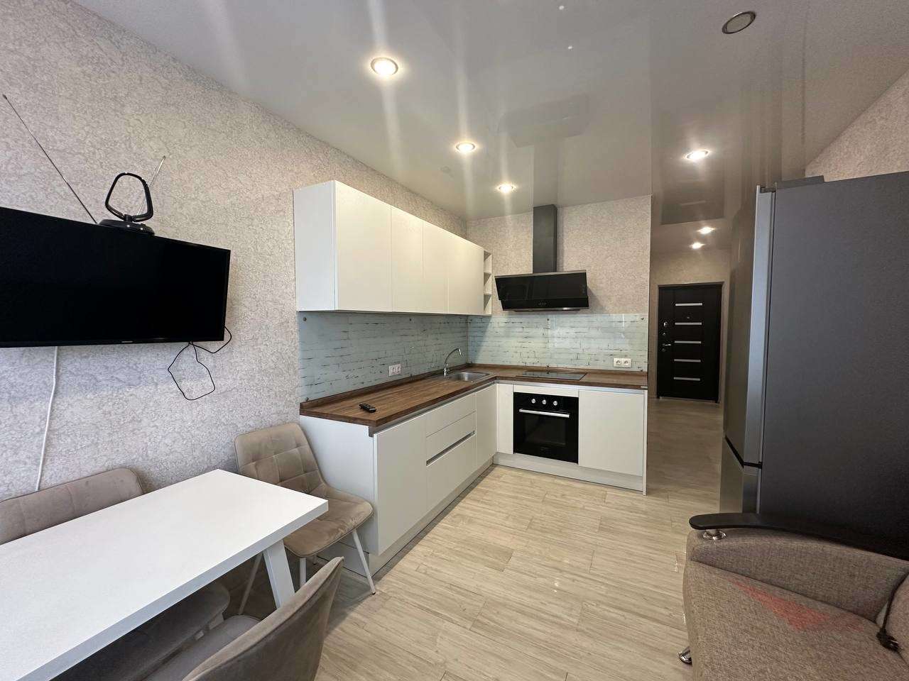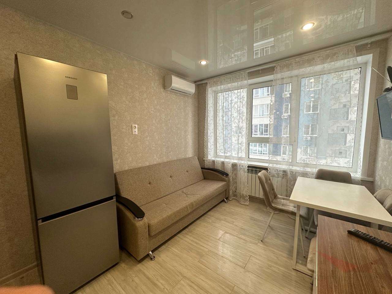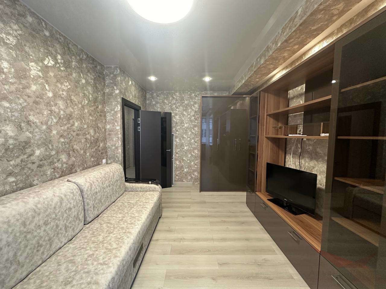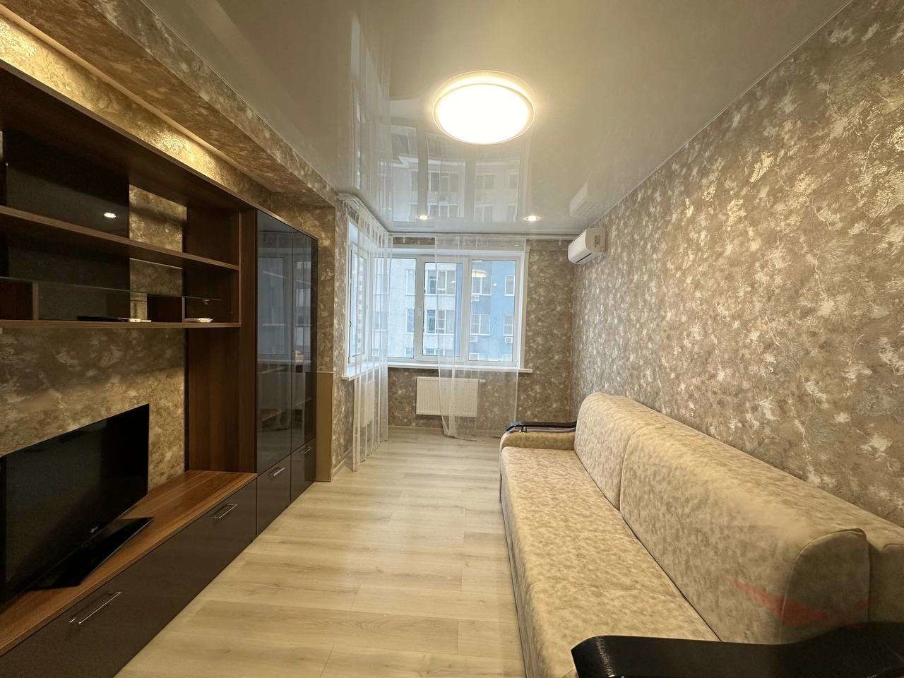 Сдается уютная однокомнатная квартира 42м с евроремонтом. Полностью укомплектованная, есть все необходимое для жизни — два дивана, холодильник, водонагреватель, два кондиционера, стиральная машина, телевизор. Окна выходят во двор.